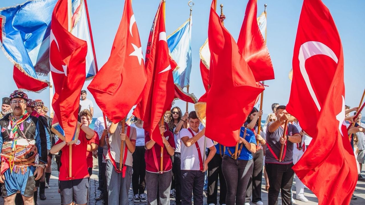 Gündem Haber- Kutlamalar, sabah saat 09.45’te Kaymakamlık binası önünde gerçekleştirilen temsili törenle başladı. Törende, esareti simgeleyen bir kız çocuğunun efeler tarafından kurtarılışını anlatan canlandırma sahnelendi ve izleyicilerden büyük ilgi gördü. Kutlamalar, Atatürk Meydanı’nda düzenlenen resmi törenle devam etti. Tören, Kaymakam İbrahim Keklik, Belediye Başkanı Ömer Günel ve Garnizon Komutanı Per.Bnb. Can Aytan’ın Atatürk Anıtı’na çelenk sunmasıyla başladı. Saygı duruşu ve İstiklal Marşı’nın okunmasının ardından halk oyunları gösterileri ile sona erdi.