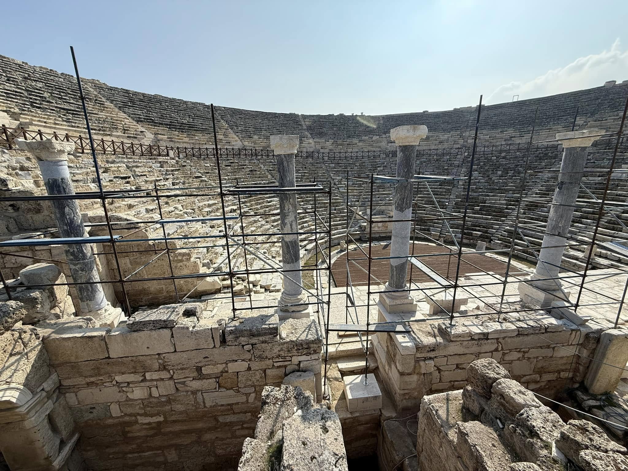 Prof. Dr. Şimşek, sözlerini şöyle sürdürdü: "Burada bulduğumuz yazıtlardan Batı Tiyatrosu'nun erken dönem tiyatrosu olması yanında aynı zamanda bir devlet tiyatrosu olduğunu öğrendik. Buradaki birçok yazıtta bir kamu tiyatrosu olduğu ve özellikle de kamu adına, halk için birçok ücretsiz etkinlik yapıldığı yer alıyor. Kültür ve Turizm Bakanlığının 'Geleceğe Miras' projesi kapsamında sahne binasındaki çalışmaları yürütüyoruz. Daha önceki yıllarda büyük gayretle Batı Tiyatrosu'nun oturma basamaklarının restorasyonunu yaptık. Sahne bölümündeki tonozlu bölümün üstündeki döşemelerin ve özellikle de birinci katın dört podyumdan oluşan 16 sütununun restorasyonuna başladık. Tiyatroda devam eden restorasyonu titizlikle yürütüyoruz."