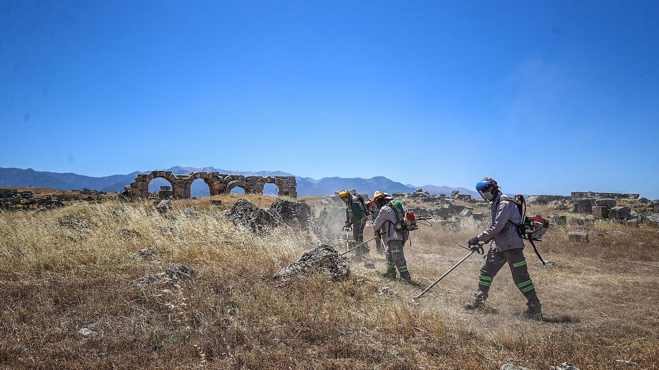 Denizli Haber - Denizli Büyükşehir Belediyesi, yaz aylarında artan hava sıcaklıklarıyla birlikte olası yangın risklerine karşı önleyici çalışmalarını sürdürüyor. Bu kapsamda Park ve Bahçeler Dairesi Başkanlığı ekipleri, UNESCO Dünya Mirası Geçici Listesi’nde yer alan Laodikya Antik Kenti’nde yangın tehlikesi oluşturabilecek kurumuş yabani otları temizledi. Tarihi alanda kuruyan yabani otların temizliğini yapan ekipler Laodikya Antik Kenti'nde meydana gelebilecek yangın riskini de önledi. Denizli Büyükşehir Belediyesi, benzer risk taşıyan tüm alanlarda çalışmalarını aralıksız sürdürmeye devam edecek.
