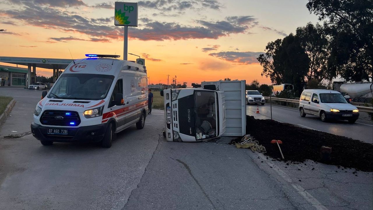 Kaza, dün Manavgat-Alanya D-400 Karayolu Karaöz Mahallesi sınırlarında meydana geldi. Edinilen bilgiye göre, Alanya yönüne seyreden Hamza P.'nin kullandığı torf toprak yüklü kamyonet, sağ arka lastiğinin patlaması ve sürücüsünün direksiyon hakimiyetini kaybetmesi sonucu devrildi. Kazada sürücü ile araçtaki Bedia G. ve Şanize S. yaralandı. Yaralılar 112 sağlık ekiplerinin olay yerindeki müdahalesinin ardından ambulansla hastaneye kaldırıldı.