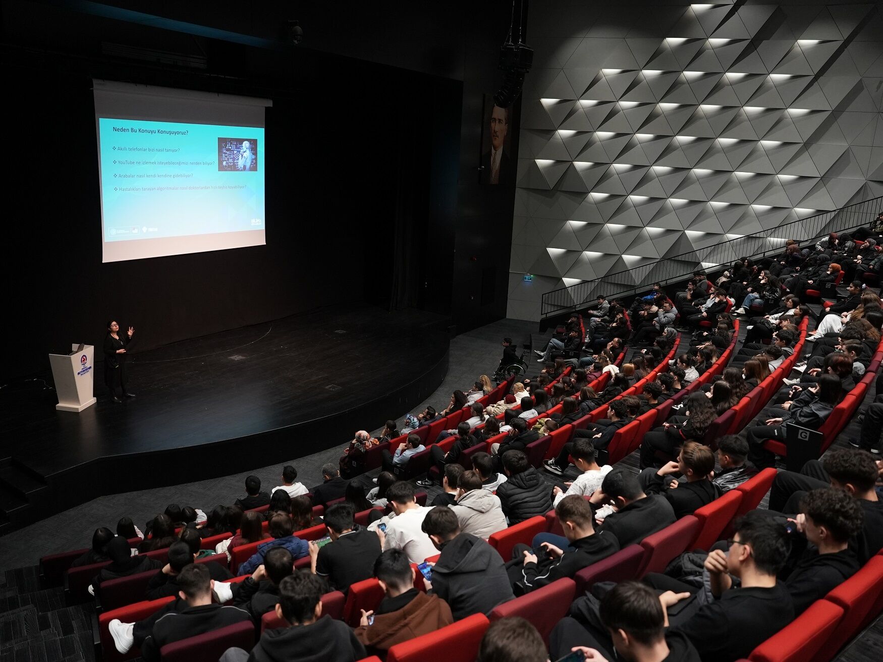 DBB Kongre ve Kültür Merkezi Fatma Yıldız Salonu’nda düzenlenen söyleşide, makinelerin veriler üzerinden nasıl öğrenme gerçekleştirdiği, algoritmaların karar alma mekanizmaları ve yapay zeka teknolojilerinin günümüzdeki kullanım alanları kapsamlı biçimde ele alındı. Öğrencilerin ilgiyle takip ettiği programda, farklı sektörlerden somut uygulama örnekleri paylaşılarak yapay zekanın gündelik hayattaki karşılığı öğrencilere anlatıldı. Söyleşi sonunda öğrenciler merak ettikleri soruları yöneltme fırsatı bulurken, bilim ve teknolojiye yönelik etkinliklerin sürdürüleceği belirtildi.