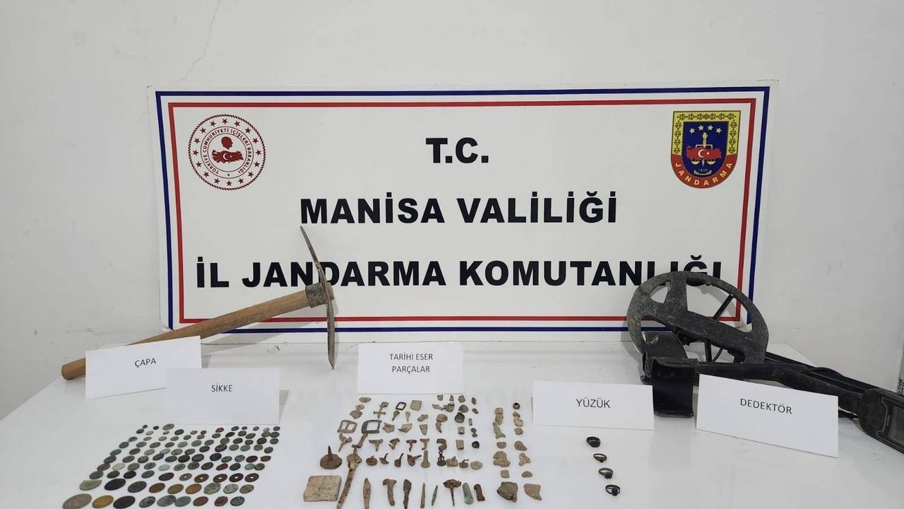 Gündem Haber - Edinilen bilgiye göre, 14 Ağustos tarihinde Yunusemre ilçesinde M.T. (45) isimli şahsın arazide dedektör ile arama yaptığı belirlendi. Jandarma ekipleri tarafından yapılan çalışmada, şüphelinin ikametinde arama gerçekleştirildi. Aramalarda; 1 adet dedektör, 1 adet çapa, 4 adet yüzük, 74 adet tarihi olduğu değerlendirilen metal parça ve 101 adet sikke ele geçirildi. Ele geçirilen malzemeler muhafaza altına alınırken, nöbetçi Cumhuriyet Savcısının talimatı doğrultusunda şüpheli hakkında adli tahkikat başlatıldı. Gözaltına M.T, ifadesinin alınmasının ardından serbest bırakıldı.
