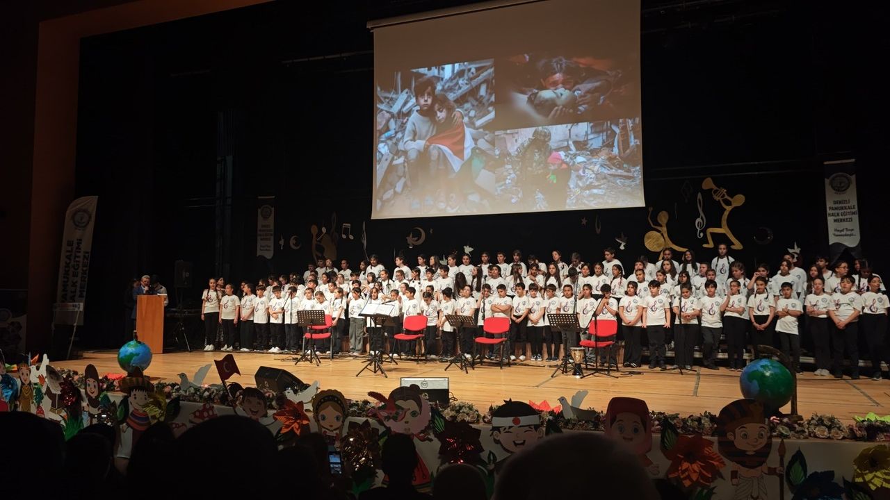 Denizli’nin Pamukkale ilçesinde TBMM’in kuruluşunun 105. yıldönümü dolayısıyla 105 çocuğun görev aldığı koroyla konser düzenlendi. Pamukkale Kongre ve Kültür Merkezi Mehmet Gazi Salonunda Zehra Nihat Moralıoğlu Ortaokulu ve Hüsamettin Kulaklı İlkokulu öğrencilerinden oluşan 105 üyeli çocuk korusu, Zehra Nihat Moralıoğlu Ortaokulu Müzik öğretmeni Gülay Özdoğan’ın yönetiminde yaklaşık 5 aylık bir çalışma sonucunda, 20 eseri solo ve koro olarak seslendirdi. Tüm öğrencilerin konserde giydikleri tişörtlerin dikimi ve baskıları kursiyer tarafından yapıldı.