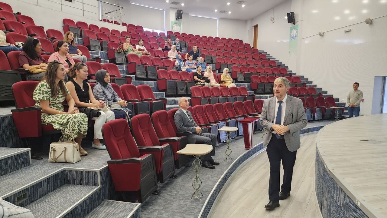 Milli Eğitim Müdürü Mustafa Yılmaz, çocukların kelime hazinelerinin gün geçtikçe daraldığına dikkat çekerek okuma alışkanlığının niteliğini artırmak gerektiğini belirtti. Öğretmenlere seslenen Müdür Yılmaz, "Bizim işimiz çocuklara okumanın değerini tekrar hatırlatmaktır" dedi.