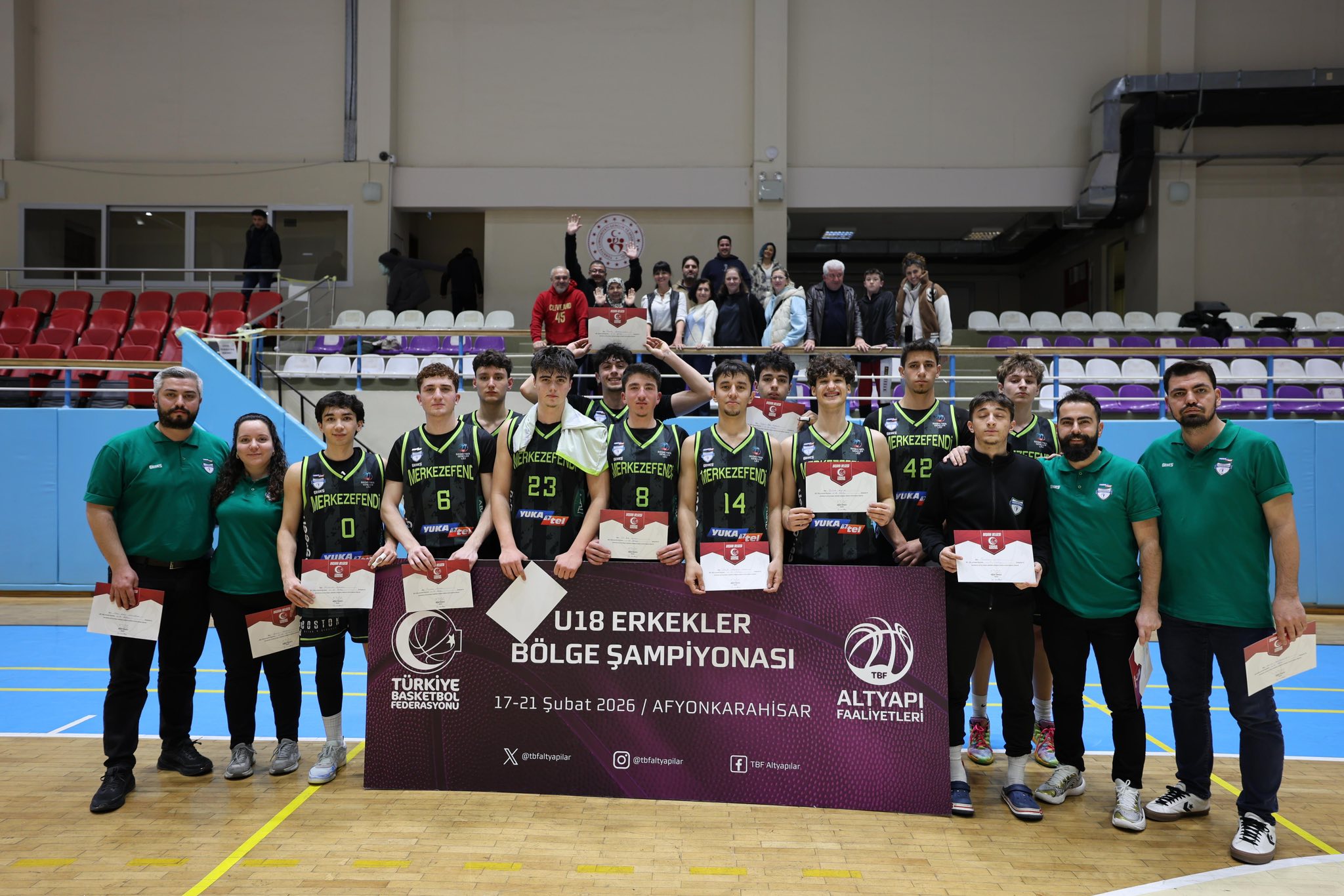 Spor Haber - Türkiye Basketbol Federasyonu tarafından Afyonkarahisar’da düzenlenen U-18 Erkekler Bölge Şampiyonası’nda mücadele eden Merkezefendi Belediyesi U-18 Erkek Basketbol Takımı, grup müsabakalarında oynadığı 4 karşılaşmanın tamamını kazanarak namağlup şekilde lider oldu ve Anadolu Şampiyonası’na katılma hakkı elde etti. Oyun disiplini, takım ruhu ve sahadaki mücadele gücüyle dikkat çeken genç sporcular, turnuvayı zirvede tamamlayarak önemli bir başarıya imza attı.
