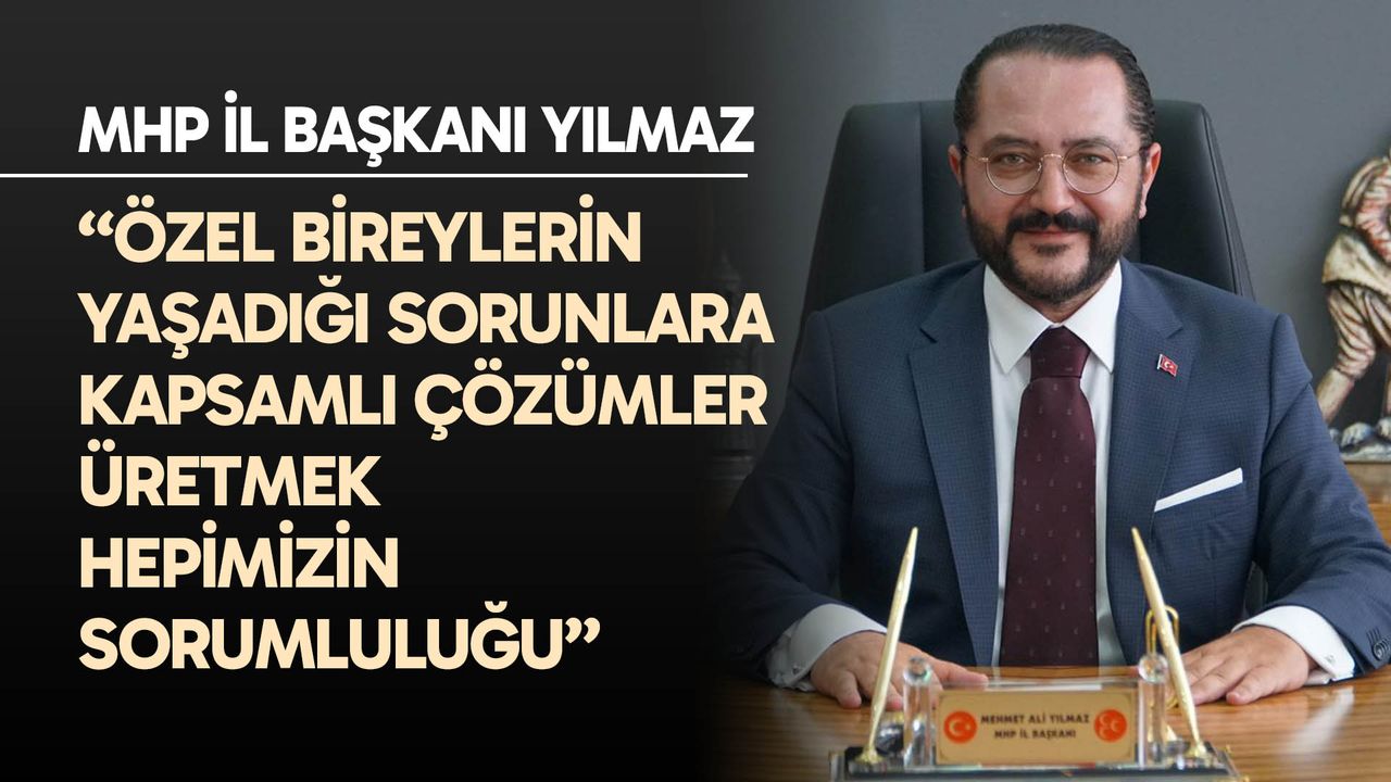 Yılmaz, mesajında, “Engel, insanın fikrinde, kalbinde, duygusunda olmasın. Sonrasında aşılamayacak hiçbir şey yok. Özel bireylerimizin toplumda var olabilecekleri imkân ve fırsatlar sunmak, herkes gibi ekonomik, siyasal, sosyal ve kültürel yaşama tam katılmalarını sağlamak hepimizin katkı ve ortak çabasına ihtiyaç duyulan toplumsal bir görevdir. Onların yaşadığı sorunlara kapsamlı çözümler üretmek hepimizin sorumluluğu. Şu unutulmamalıdır ki herkes bir engelli adayıdır. Doğuştan olduğu kadar yaşamın ilerleyen evrelerinde de oluşabilecek engelliliğin her şeyden önce sevgi, şevkat ve dayanışma ile üstesinden gelineceğinin bilincinde olmalıyız. Bunu hep zihnimizde tutarak hareket etmeli özel bireylerimizin hayatını kolaylaştırmalıyız. Özel bireylerimizin her şart ve koşulda yanlarında olmaya devam edeceğiz” ifadelerine yer verdi.