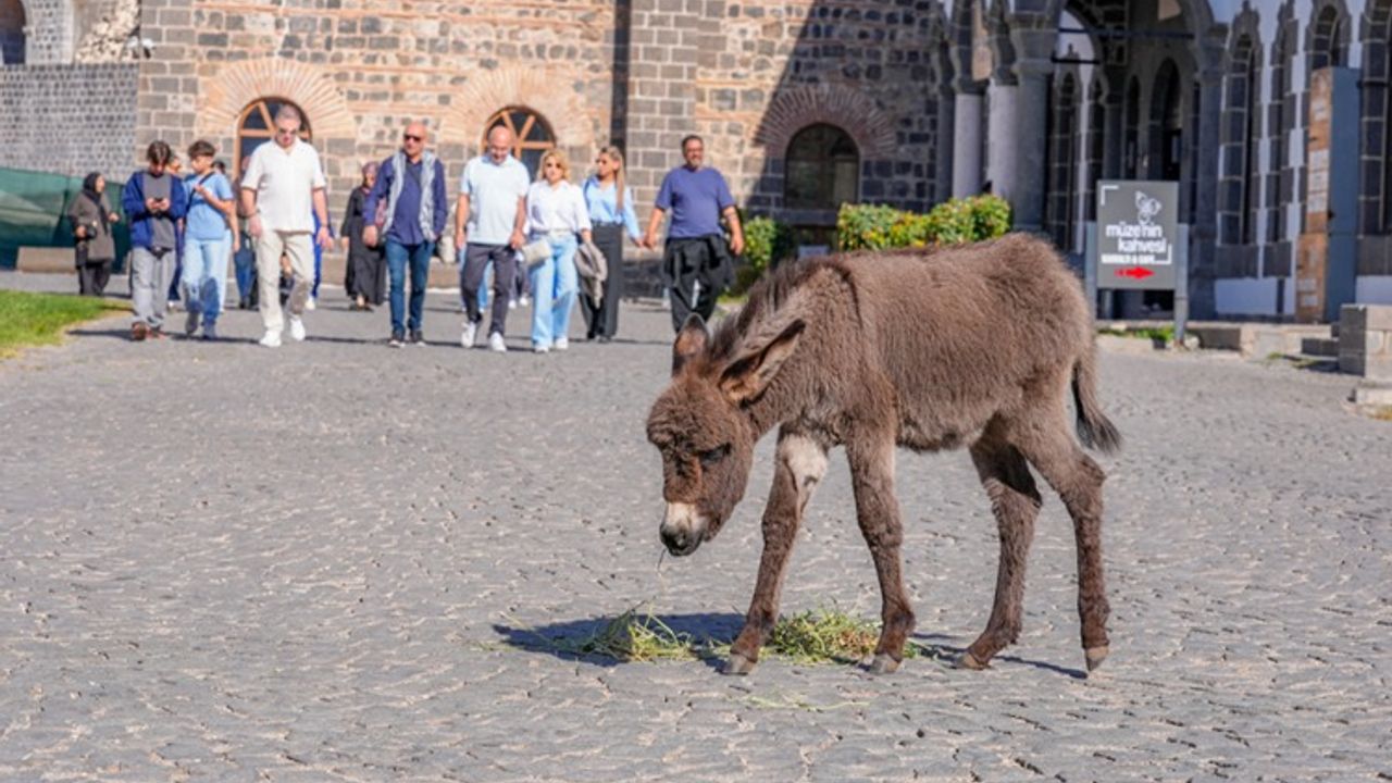 Sıpa "Midas", Diyarbakır'ın tarihini keşfetmek için müzeyi gezen ziyaretçilerin, özellikle de çocukların sevgisini kazandı.