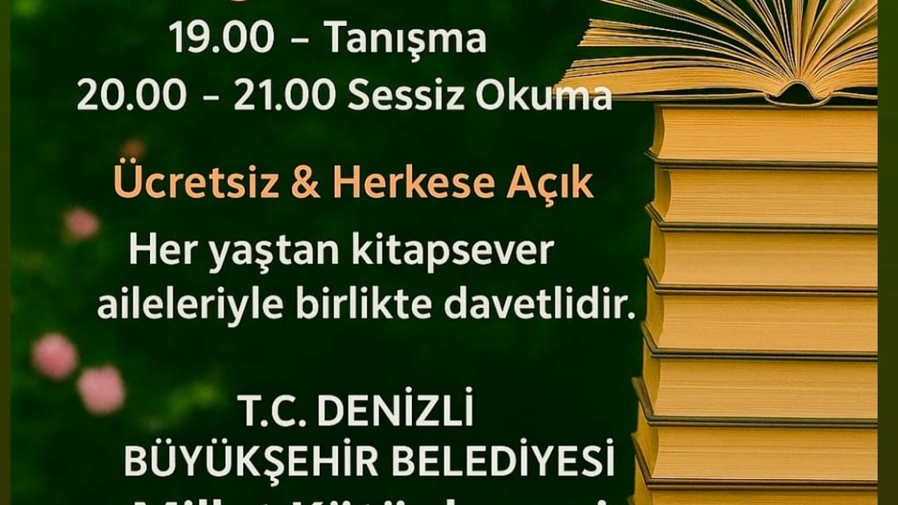 Denizli Haber - Denizli Büyükşehir Belediyesi’nin Müftü Ahmet Hulusi Efendi Camii ve Külliyesi içerisinde yer alan Büyükşehir Millet Kütüphanesi’nde keyifli bir program düzenlenecek. Silent Book Club Denizli etkinliği tüm kitapseverleri bekliyor. Kitap okumayı seven çocukların da aileleriyle birlikte katılabileceği etkinlik, tamamen ücretsiz olacak. Program kapsamında katılımcılar önce tanışma bölümüyle birbirini yakından tanıma fırsatı bulacak, ardından “Sessiz Okuma Saati” gerçekleştirilecek. Bu buluşma, kütüphane ortamında farklı yaş gruplarını bir araya getirerek kitap okuma kültürünü daha da yaygınlaştırmayı hedefliyor.