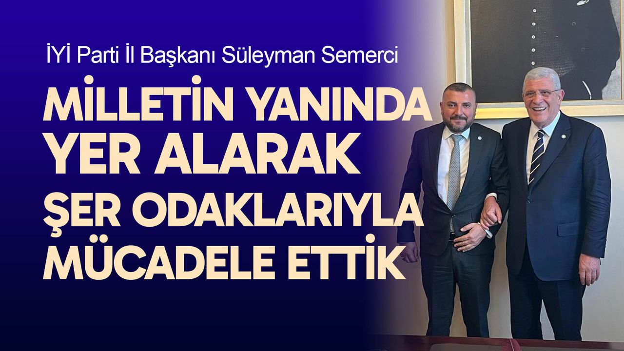 İYİ Partinin kuruluş felsefesinden ayrılmadan yoluna devam ettiğini belirten Semerci, ‘’Geride bırakılan 8 yılda İYİ Parti kuruluş felsefesinden hiç ayrılmamış, Türk Milleti’nin TBMM’nde sesi olmuştur. Özellikle bir yıldır devam eden 2.Çözüm Süreci’nde; Türkiye Cumhuriyeti’nin ulus devlet ve üniter yapısının tartışılmaya başlandığı dönemde Türk Milleti’nin yanında yer alarak şer odaklarının planlarının karşısında yer almıştır. Sayın Genel Başkanımız Müsavat Dervişoğlu’nun liderliğinde, Cumhuriyetimizin kurucusu Gazi Mustafa Kemal Atatürk’ün Türk Milleti’ne emrettiği birinci vazifemiz gereği Türkiye Cumhuriyeti’nin yıkılması ve Türk Yurdu’nun Türksüzleştirilmesi projesine dimdik karşı duracağız. Bu sadece bir siyaset meselesi değil, siyasi oy devşirme meselesi değil; Türkiye Cumhuriyeti’ne, Türk Milleti’ne ve Türklüğe sahip çıkma meselesidir. Bu mücadelemiz; şer odaklarının planlarının sonuçsuz kalmasına, Türk Milleti’nin Atatürk’ün gösterdiği muasır medeniyet seviyesine çıkmasına kadar devam edecektir. Bu yolda yanımızda olan tüm vatandaşlarımıza ve partililerimize sonsuz teşekkür ederim’ dedi.