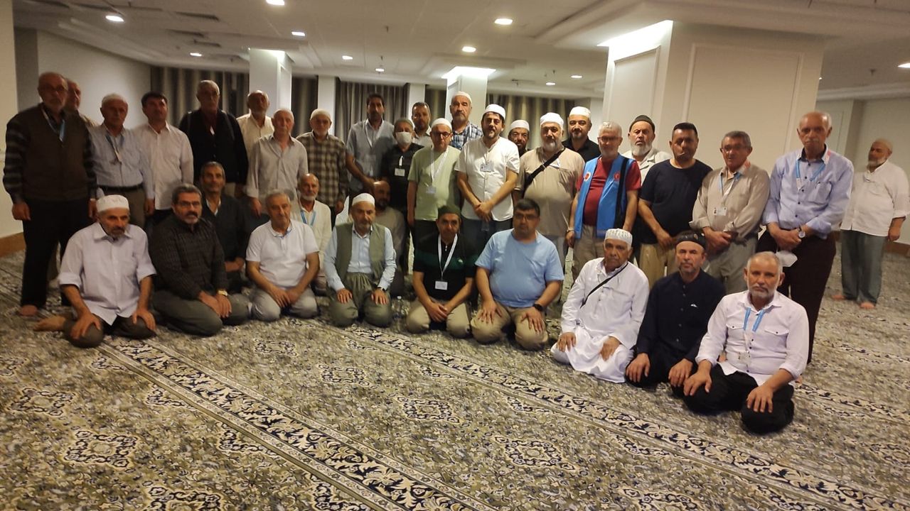 Umre ibadeti için kutsal topraklarda bulunan Türk umreci kafileleri, Miraç kandili dolayısıyla kaldıkları otelin mescidinde Türkiye’den gönderilen ve umreciler tarafından okunan hatimler için toplu dua programı düzenledi.