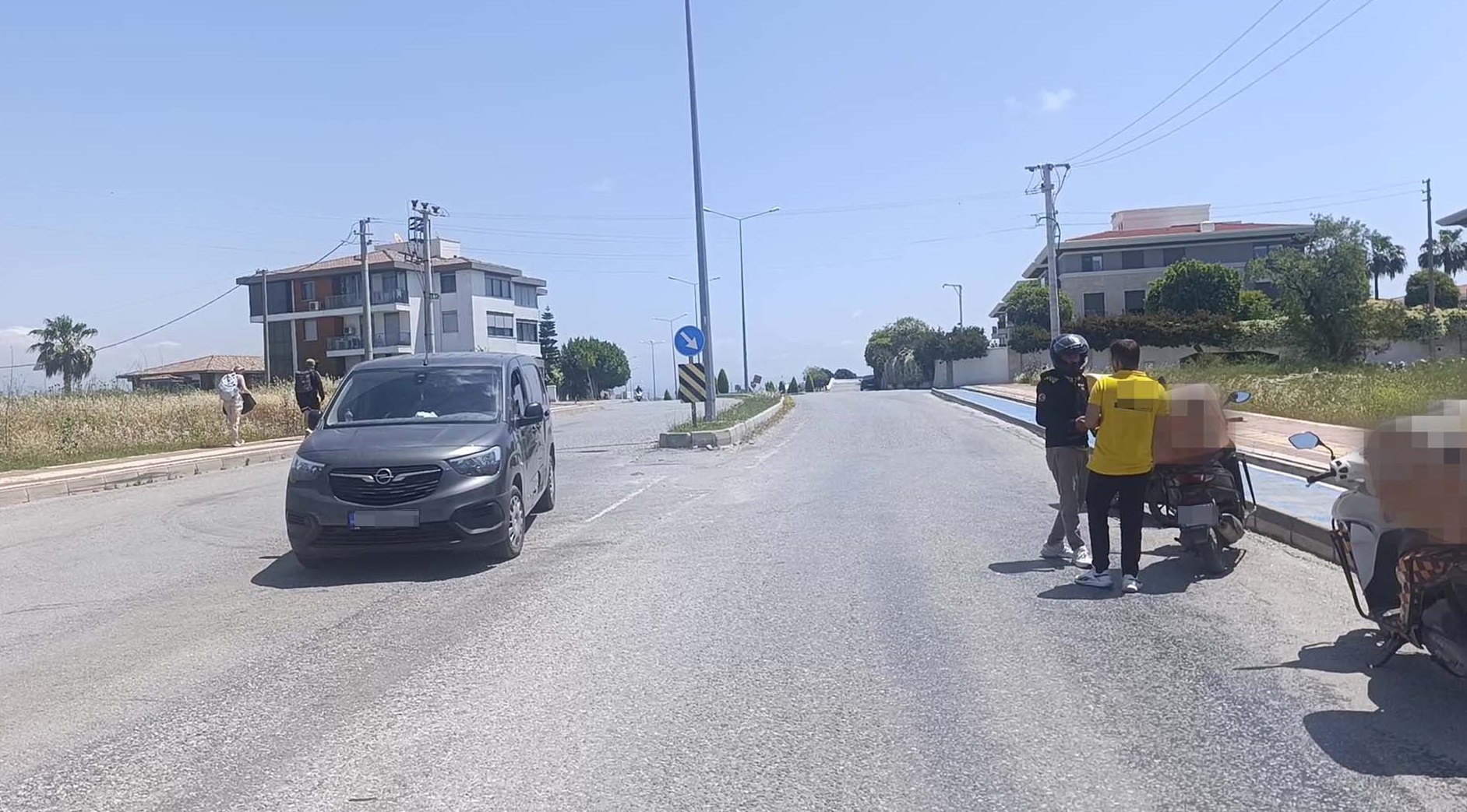 Antalya'nın Manavgat ilçesi Side Mahallesi 8211 Sokak'ta meydana gelen kazada, seyir halindeki B.E.'nin kullandığı motosiklet, 1570 Sokak kavşağına yaklaştığı sırada aynı istikamette giderken yasağı ihlal ederek U dönüşü yapmaya kalkan F.T.'nin kullandığı hafif ticari araca yandan çarptı. Kazada yaralanan ve 112 Sağlık ekipleri tarafından olay yerindeki müdahalenin ardından ambulansla hastaneye kaldırılan motosiklet sürücüsünün durumunun iyi olduğu öğrenildi.