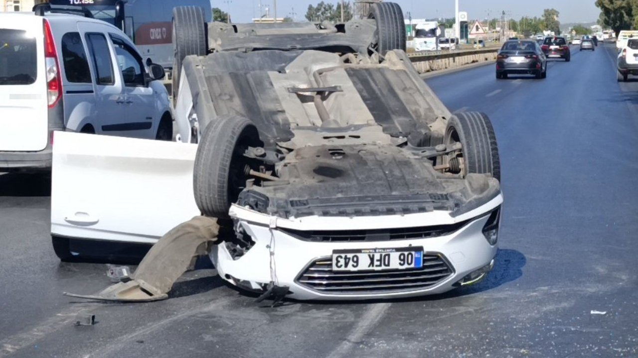 Antalya’nın Manavgat ilçesinde seyir halindeki otomobil, önündeki otomobile çarptıktan sonra yol ortasında devrildi. Otomobilden çıkarılan sürücü, tedavi için ambulansla hastaneye götürüldü.