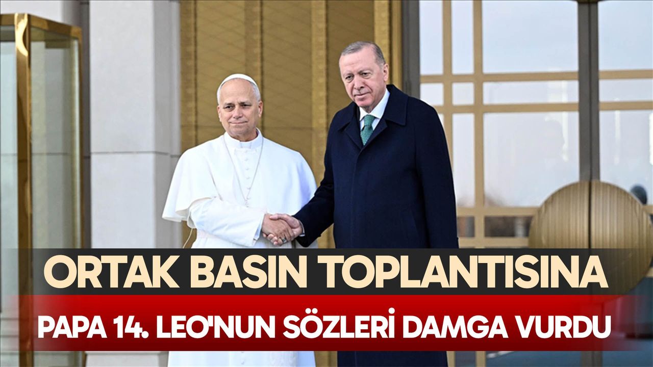 "Başta bu salondan yansıyanlar olmak üzere ziyaret boyunca Türkiye'den verilecek mesajların Türk-İslam dünyasına, tüm Hristiyan coğrafyasına ulaşacağına, dünyada barış umutlarını daha da artıracağına yürekten inanıyorum" diyen Cumhurbaşkanı Erdoğan'ın ardından kürsüye çıkan Papa 14. Leo, dikkat çeken açıklamalarda bulundu.