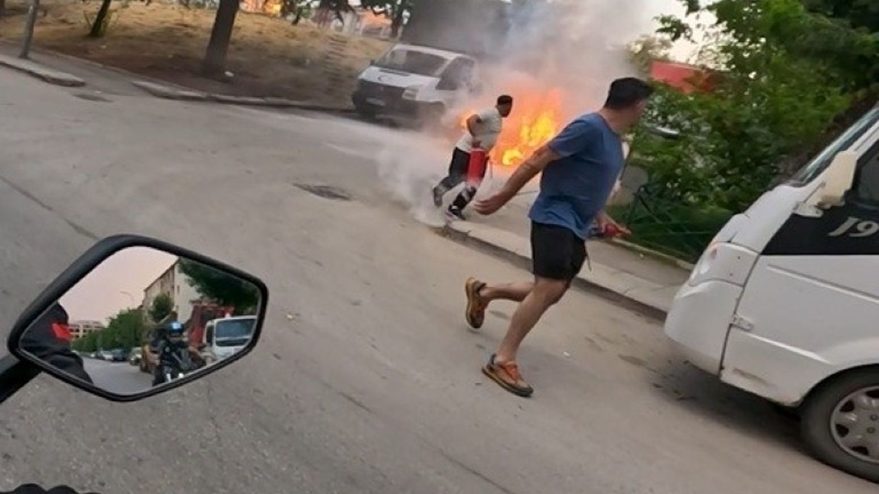 Gündem Haber - Odunpazarı İlçesi Gültepe Mahallesi Akbayır Caddesi üzerinde, önceki gün seyreden bir motosiklet sürücüsü, ara sokakta bir aracın yandığını fark etti. Motosiklet sürücüsünün kask kamerasına yansıyan yangında aracın alev alev yandığı görülüyor. Yaşanan panik anı anbean kask kamerasına yansıdı. Tedirgin olan vatandaşların yangın tüpleri ile müdahale etmeye çalıştığı anlar kameralara yansıdı. İhbar üzerine olay yerine gelen itfaiye ekipleri araçtaki yangını söndürürken, aracın kullanılamaz hale geldiği öğrenildi.