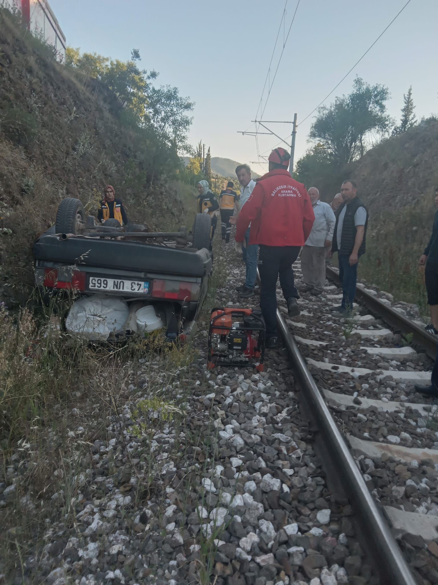 sağlık ekipleri tarafından Dursunbey Devlet Hastanesine kaldırıldı. Tren yoluna düşen otomobil ise traktör yardımı ile çıkarıldı.