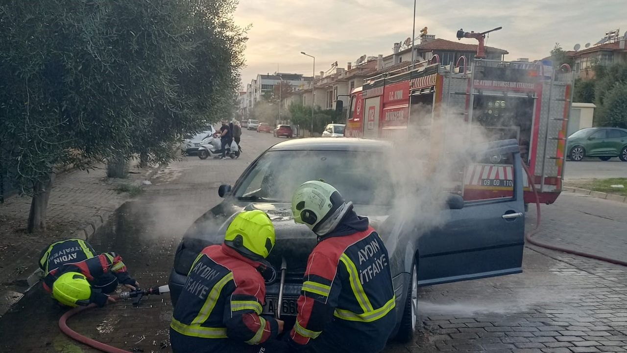 Gündem Haber - Olay, Efeler ilçesi Dedekuyusu Caddesi üzerinde saat 18.00 sıralarında meydana geldi. Edinilen bilgiye göre seyir halindeki bir otomobilin motor bölümünden henüz bilinmeyen bir nedenle dumanlar yükselmeye başladı. Bir anda alevlerin yükseldiği aracı sağa çeken sürücü, durumu 112 Acil Çağrı Merkezi'ne bildirdi. İhbar üzerine bölgeye itfaiye ve polis ekipleri sevk edildi. Kısa sürede bölgeye gelen itfaiye ekipleri, araca müdahale ederek yangını söndürdü. İtfaiye ekipleri soğutma çalışması gerçekleştirirken, yangında otomobil kullanılamaz hale geldi. Yangının çıkış nedeninin belirlenmesi için inceleme başlatıldı.