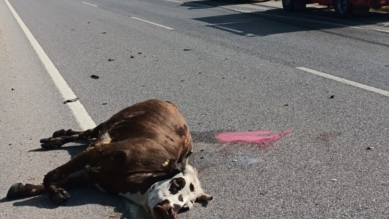 Gündem Haber - Edinilen bilgiye göre, Mustafa C. yönetimindeki otomobil havalimanı kavşağı civarında önüne çıkan ineğe çarptı. İnek olay yerinde telef olurken hasar gören otomobildeki kazadan şans eseri kurtuldu.