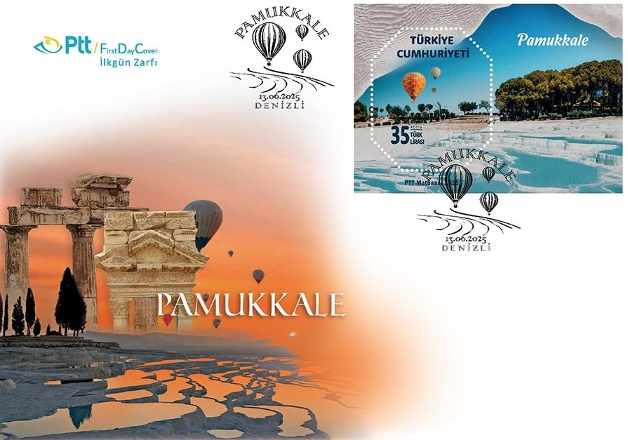 Denizli Haber - PTT AŞ tarafından hazırlanan “Pamukkale” konulu anma pulu satışa sunuldu. 60 x 85 mm boyutlarındaki özel pul 35 TL bedelle satışa çıkarıldı. Aynı temaya sahip, 70 TL değerindeki ilk gün zarfı da PTT şubeleri ve PTT AŞ’nin resmi filateli web sitesi www.filateli.gov.tr üzerinden satışa çıktı.