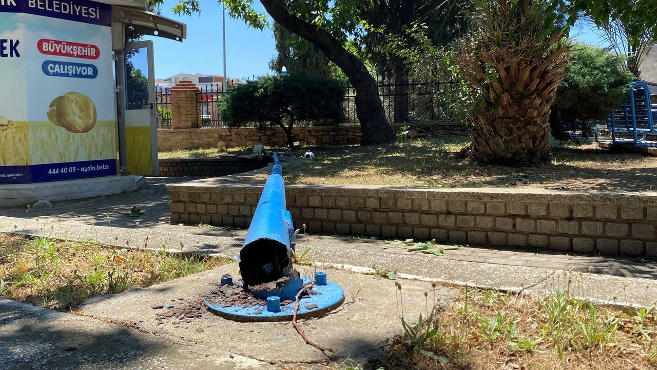 Gündem Haber - Olay, Kemer Mahallesi Turgut Özal Bulvarı üzerindeki Efeler Belediyesi'ne ait Mareşal Fevzi Çakmak Parkı içerisinde saat 14.00 sıralarında meydana geldi. Edinilen bilgiye göre, Efeler Belediyesi Park ve Bahçeler Müdürlüğü sorumluluğunda bulunan parktaki demir aydınlatma direği bir anda devrilerek Halk Ekmek Satış Büfesi üzerine oradan da parkta oturan 2 kişinin üzerine düştü. Şahıslar vücutlarının çeşitli yerlerinden yaralanırken, olayı görenler durumu 112 Acil Çağrı Merkezi'ne bildirdi. İhbar üzerine bölgeye sağlık ve polis ekipleri sevk edildi. Kısa sürede olay yerine gelen sağlık ekipleri ilk müdahaleleri sonrası yaralıları ambulansla hastaneye kaldırdı.