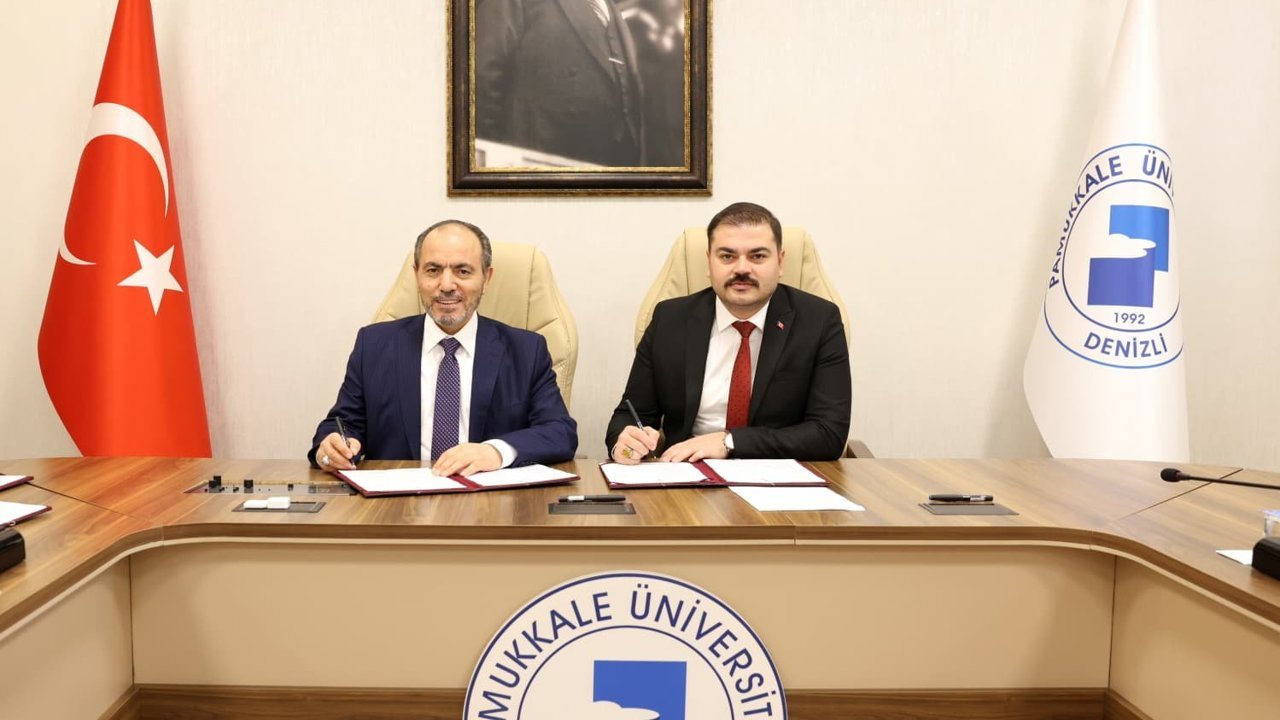 Denizli Haber - Pamukkale Üniversitesi Rektörlüğünde yapılan protokolü Rektör Prof. Dr. Mahmud Güngör ile Denizli Çalışma ve İş Kurumu Müdürü Çağrı Çeliktaş arasında imzalandı.