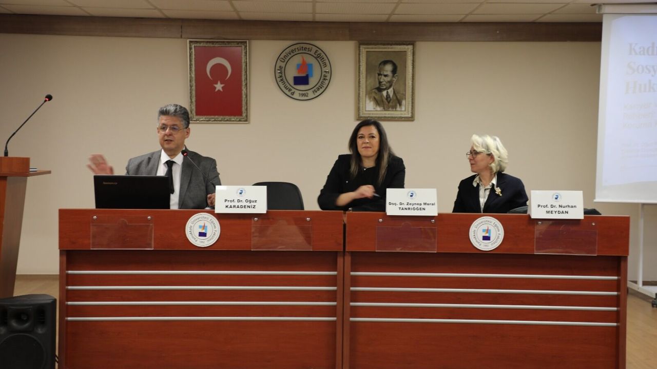 Panelin ikinci bölümünde kürsüye gelen İktisadi ve İdari Bilimler Fakültesi Çalışma Ekonomisi ve Endüstri İlişkileri Bölüm Başkanı Prof. Dr. Oğuz Karadeniz ise konunun iş hayatı ve istihdam boyutunu masaya yatırdı. Kadının iş gücüne katılımının ve ekonomik bağımsızlığının, şiddete karşı durabilmedeki en kilit unsur olduğunu belirten Karadeniz, İş Kanunu’nda güvence altına alınan “eşit davranma ilkesi” ve “eşit işe eşit ücret” kuralının önemine değindi. Özellikle kayıt dışı istihdamın kadınların geleceğini nasıl ipotek altına aldığını anlatan Karadeniz, kadınların sosyal güvenlik şemsiyesi altına tam anlamıyla alınmasının yalnızca ekonomik bir hamle değil, aynı zamanda sağlam bir toplumsal irade meselesi olduğunu vurguladı.