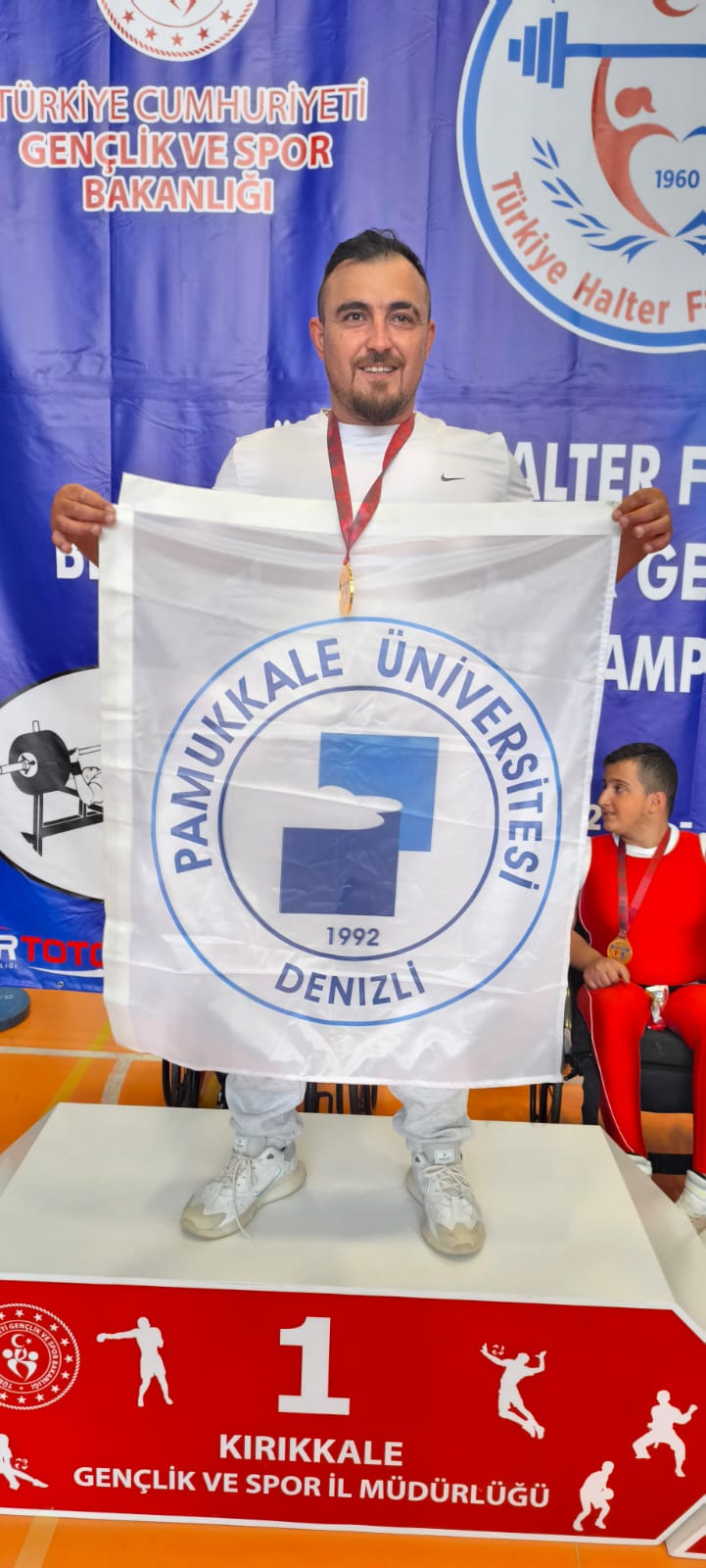 Denizli Haber - PAÜ Acıpayam MYO personeli Hakan Dağ, Türkiye Halter Federasyonu tarafından 12 Haziran Perşembe günü Kırıkkale’de düzenlenen Bedensel Engelliler Halter Gençler ve Büyükler Türkiye Şampiyonası’nda altın madalyaya uzandı.