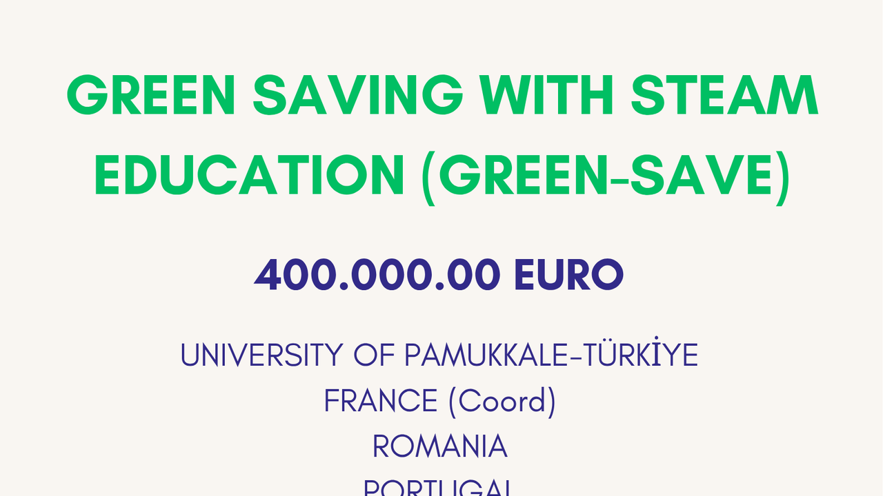Denizli Haber - PAÜ’nünde ortağı olduğu 400.000.00 euro bütçeli “GreenSavingwithSteamEducation (GREEN-SAVE)” başlıklı AB Erasmus projesinin ekibinde Pamukkale Üniversitesi Eğitim Fakültesi Öğretim Üyeleri Prof. Dr. Fatma Kırmızı, Prof. Dr. Şahin Kapıkıran, Doç. Dr. İbrahim Halil Yurdakal ve Dr. Merve Eker Çelebi yer alıyor.