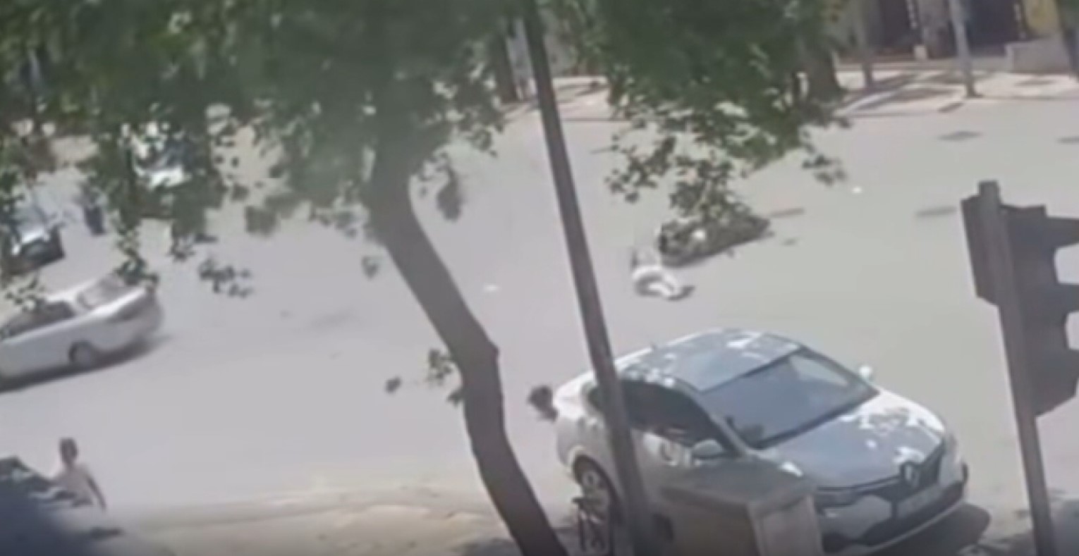 Kaza anı, bir iş yerinin güvenlik kamerasınca görüntülendi.