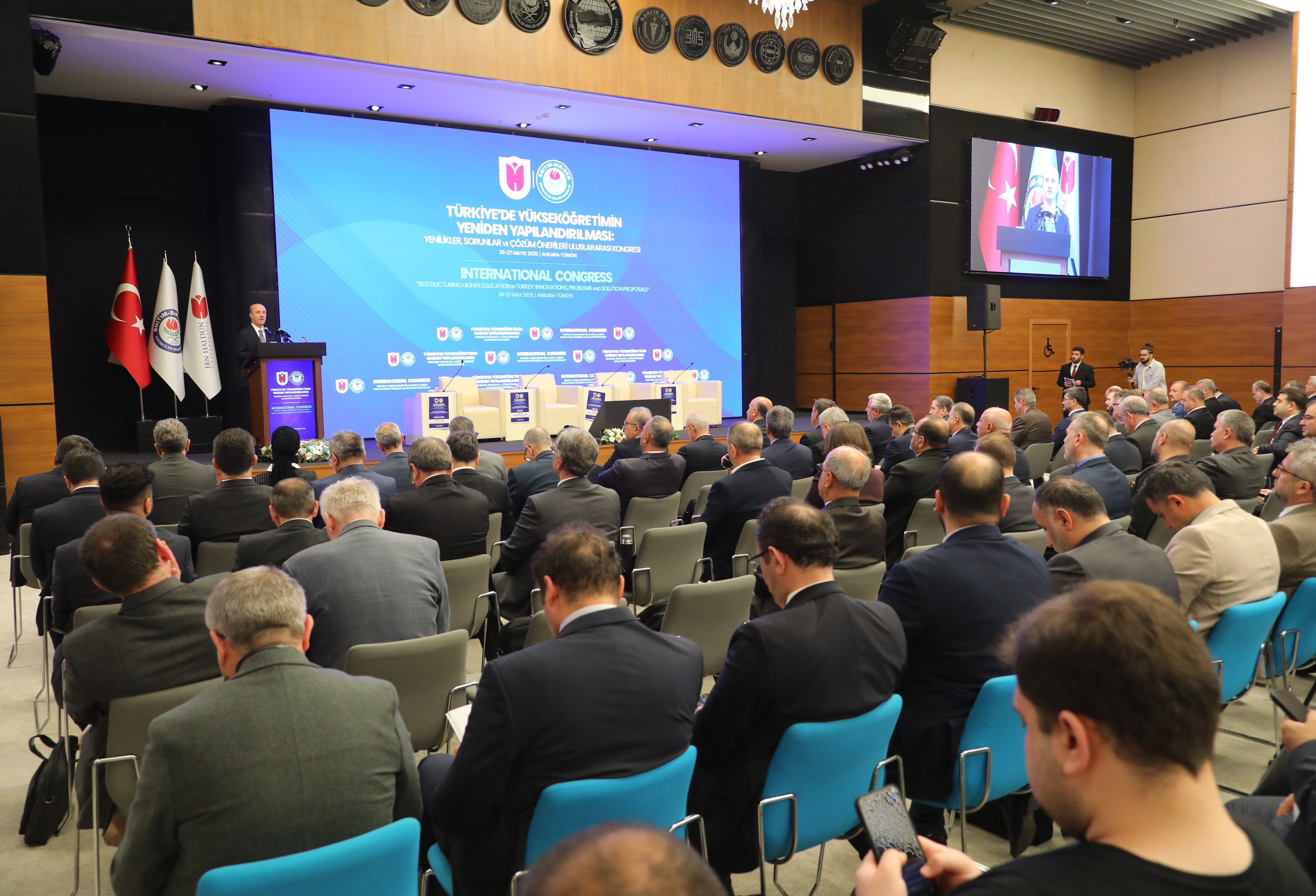 Programda konuşma yapan Yükseköğretim Kurulu Başkanı Prof. Dr. Erol Özvar,“Yükseköğretim Kurulu olarak ortak akla dayanan, toplumsal faydayı önceleyen, bilimsel mükemmeliyet eksenli ve insan odaklı bir sistem inşa etme kararlılığımızı sürdüreceğiz. Eğitim-Bir-Sen ve İbn Haldun Üniversitesi iş birliğiyle düzenlenen Türkiye’de Yükseköğretimin Yeniden Yapılandırılması: Yenilikler, Sorunlar ve Çözüm Önerileri Uluslararası Kongresi’nin ülkemiz adına kalıcı kazanımlara vesile olmasını dilerim.” dedi. Prof. Dr. Özvar: “Yükseköğretim Kurulu olarak Türk yükseköğretimini küresel ölçekte rekabetçi, kapsayıcı ve nitelikli bir yapıya kavuşturmak amacıyla son yıllarda kapsamlı bir vizyon geliştirdik. Bu vizyonun temelinde, üniversitelerimizin sadece bilgi üretim merkezleri olarak değil aynı zamanda kalkınmanın, toplumsal dönüşümün ve uluslararası iş birliğinin ana aktörleri haline gelmesi bulunmaktadır. Bütünüyle ülkemizde geliştirdiğimiz öncü uluslararası iş birliği modellerimiz yalnızca akademik iş birliği değil karşılıklı anlayış, kültürel etkileşim ve birlikte kalkınma ilkeleriyle tasarlanmış ve hayata geçirilmeye başlamıştır. Türk yükseköğretimi artık Balkanlar, Orta Asya, Afrika ve Orta Doğu gibi stratejik coğrafyalarda Türkiye’nin bilimsel diplomasinin taşıyıcısı konumuna gelmiştir. Üniversitelerimizin dünya ölçeğinde daha üst sıralara çıkması ve küresel akademik marka değerlere sahip olması en öncelikli hedeflerimiz arasındadır. Yaptığımız çalışmaların olumlu yansımaları, uluslararası üniversite sıralamalarında da kendini göstermektedir. Farklı sıralama kuruluşlarında şu an ilk 500’e girmeyi başarmış 7 üniversitemiz vardır. Bunlardan 2’si şu anda ilk 300 içerisindedir. Hedefimiz önümüzdeki yıllarda ilk 500’e en az 10 üniversitemizin girmesi için gerekli yapısal dönüşümü sağlamak ve ilk 100’de mutlaka bir Türk üniversitesini görmektir. Gazze’de büyük bir soykırım uygulanmaktadır. Üniversitesi yıkılan ve ülkesinden sürülmek zorunda kalan Filistinli öğrencilere üniversitelerimizi açtık. Türk üniversiteleri sadece Gazze'den çıkartılmak zorunda kalan öğrencilere değil aynı zamanda söz gelişi Afrika'da, Sudan'da büyük iç karışıklıklar sebebiyle üniversiteleri kapatılan, öğrencileri yurt dışına çıkan üniversitelere de kapılarını açtı.” şeklinde konuştu.