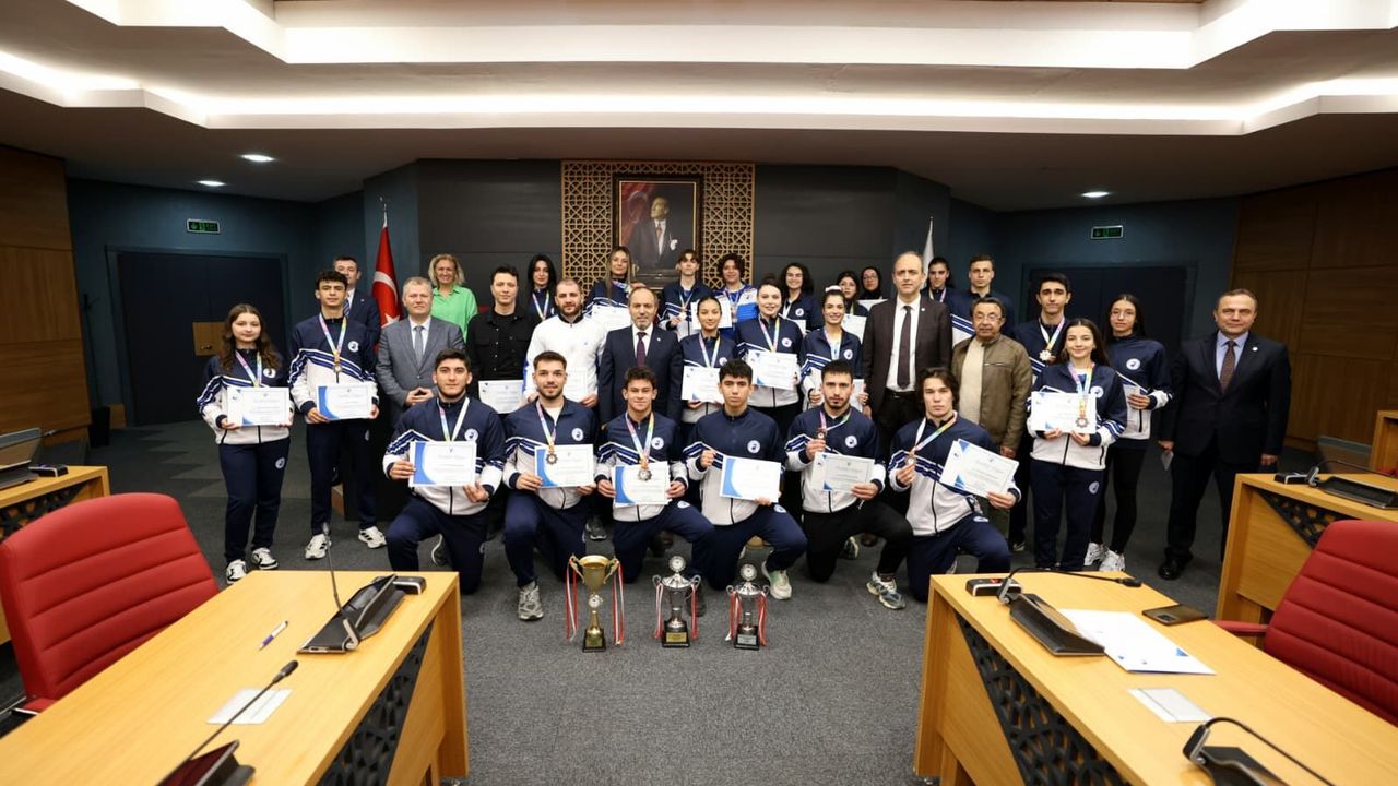 Spor Haber - Rektörlük Senato Salonu’nda düzenlenen programda Rektör Prof. Dr. Mahmud Güngör farklı kategorilerde ve farklı üniversitelerde gerçekleşen müsabakalarda derece elde eden PAÜ’lü sporculara teşekkür belgesi takdim ederek antrenörlerine ve tüm sporculara başarılarının devamını diledi.