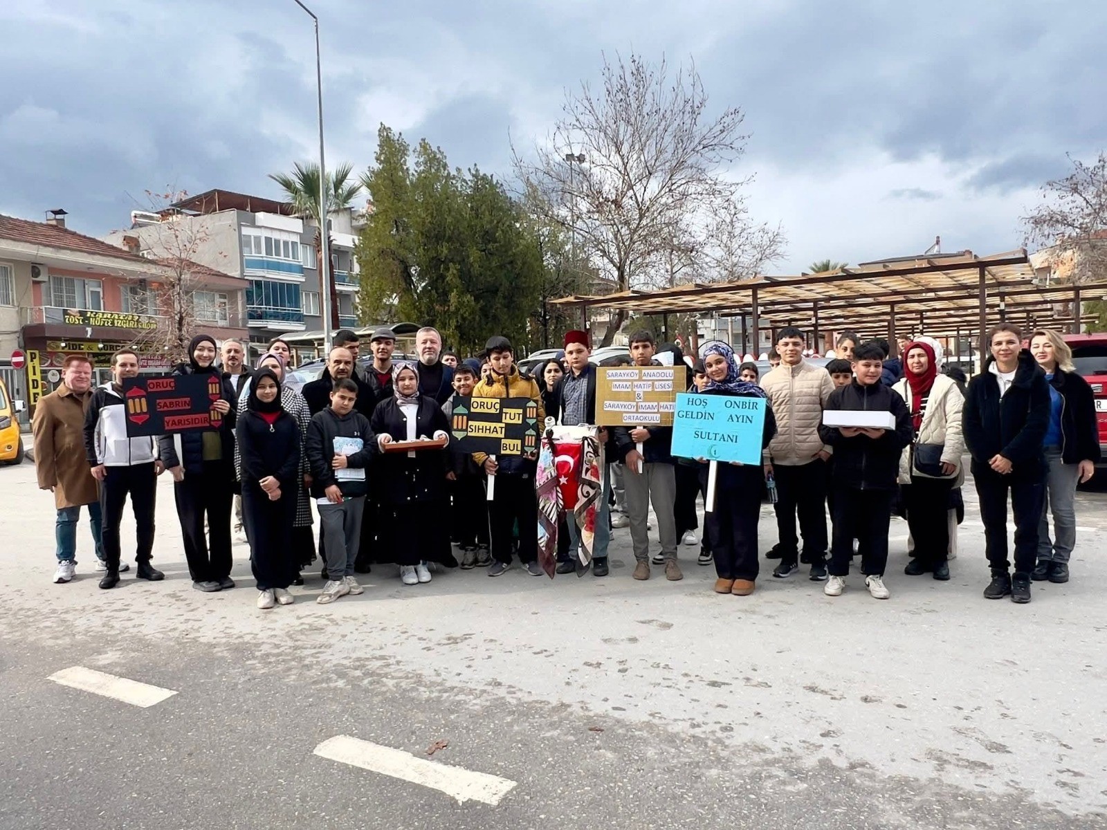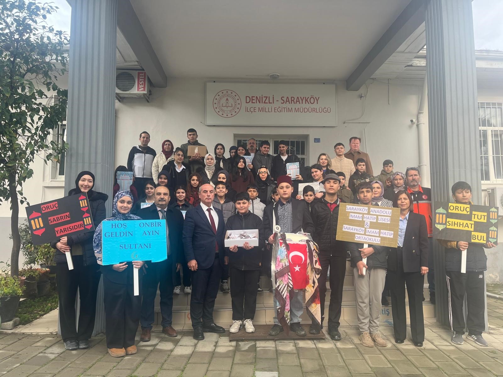 Yaşam Haber - Denizli’nin Sarayköy ilçesinde Ramazan ayının manevi atmosferi, öğrencilerin düzenlediği anlamlı bir sosyal sorumluluk projesiyle sokaklara taşındı. "Geleneklerimizle Ramazan Ayı Ruhunu Yaşatıyoruz" sloganıyla gerçekleştirilen etkinlikte Sarayköy Anadolu İmam Hatip Lisesi ve Ortaokulu öğretmen ve öğrencileri ilçe merkezinde yürüyüş yaptı. Ellerinde Ramazan ayının önemini anlatan pankartlar taşıyan öğrenciler, ilçe sokak ve caddelerinde vatandaşlarla buluştu. Geleneksel kıyafetler giyen öğrenciler, davul eşliğinde söyledikleri manilerle eski Ramazanları aratmayan görüntüler oluşturdu. Yürüyüş boyunca Sarayköy halkına bayram şekeri, imsakiye ve iftar hurması ikram edilerek Ramazan’ın paylaşma ve dayanışma ruhu yansıtıldı. Vatandaşların yoğun ilgi gösterdiği etkinlikte, özellikle çocukların ve gençlerin geleneksel Ramazan kültürünü yaşatarak sahada aktif rol alması takdir topladı. İlçe sakinleri, geçmiş yılların Ramazan heyecanını hatırlatan bu anlamlı organizasyondan duydukları memnuniyeti dile getirdi.