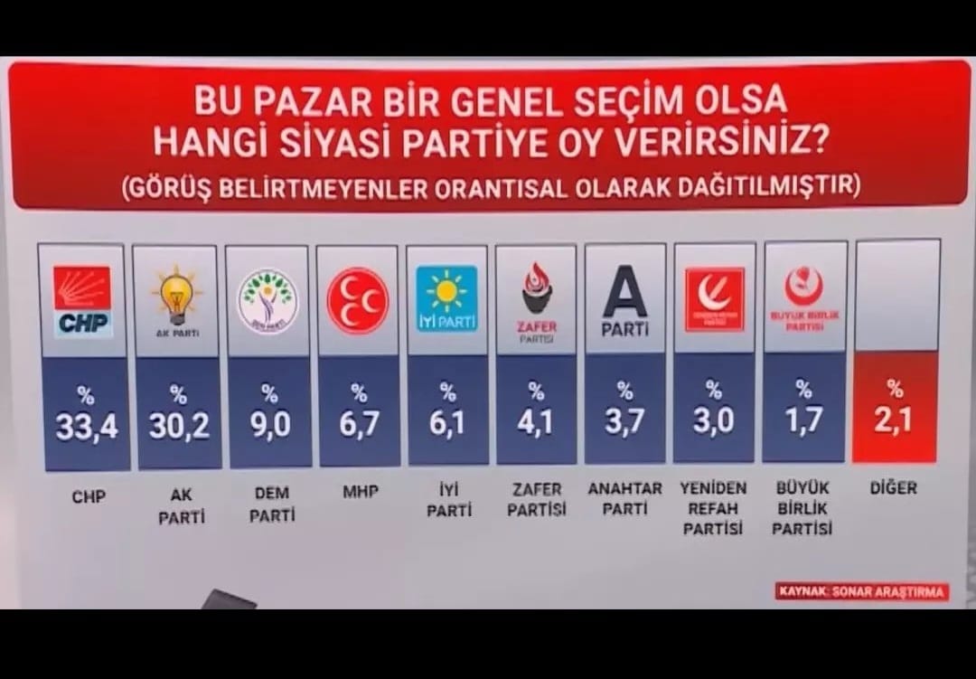 Anketler genel olarak, yerel seçimleri AKP'nin önünde tamamlayan CHP'nin yakaladığı çıkışı sürdürdüğünü gösterirken Sonar Araştırma'nın verileri bu kez oy oranlarından çok vatandaşın tavrına ilişkin mesajları ortaya koydu.