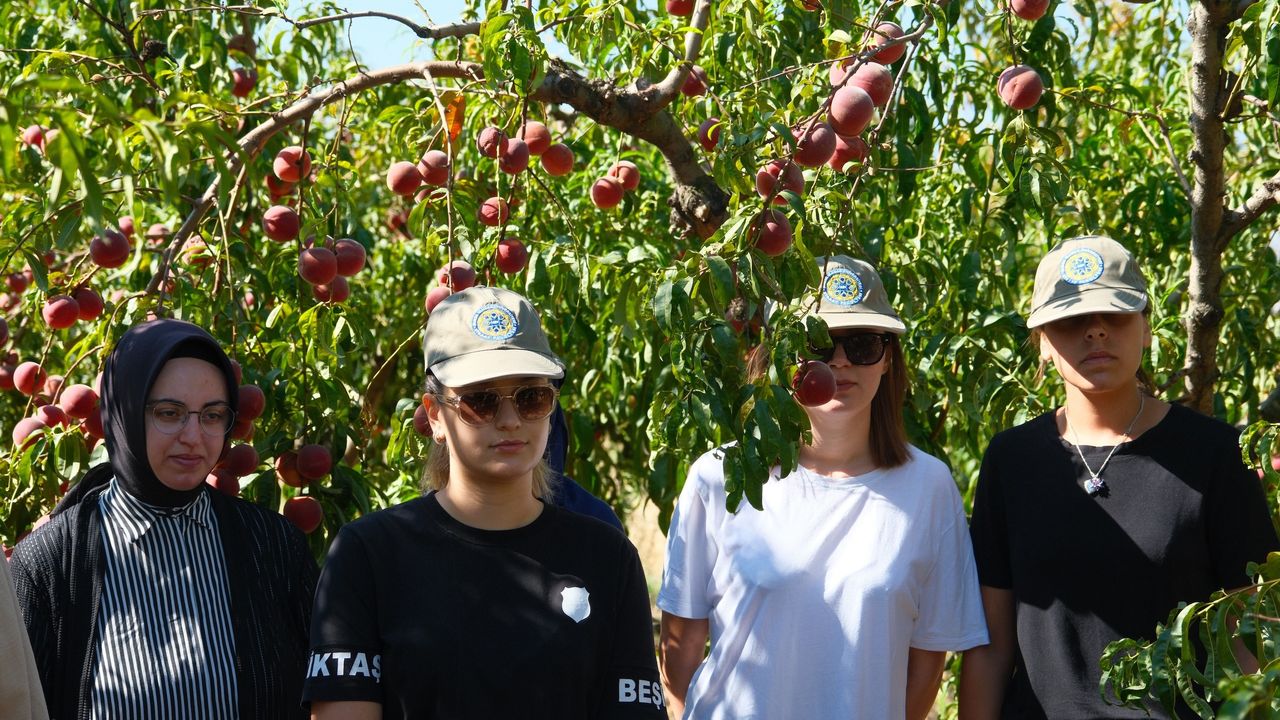 "İkinci sınıf öğrencileri çiftlik stajı yapıyor. 9 bölümün öğrencileri hasat ediyor. Eylül sonuna kadar sürüyor. Öğrenciler nektarin ve şeftali çeşitlerini tanıyorlar. Şeftalide ne var hasadı nasıl yapılıyor görmüş oluyorlar. Bitki koruma öğrencileri hastalık ve zararlılarını öğreniyorlar. Hem onların öğrenmesini sağlıyoruz hem üretim yaparak döner sermayeye katkı sağlıyoruz hem de üreticilere yol gösterici çalışmalar yürütüyoruz. Öğrenciler, koleksiyon bahçesinde okuldan sonraki hayatları için tecrübe kazanıyor."