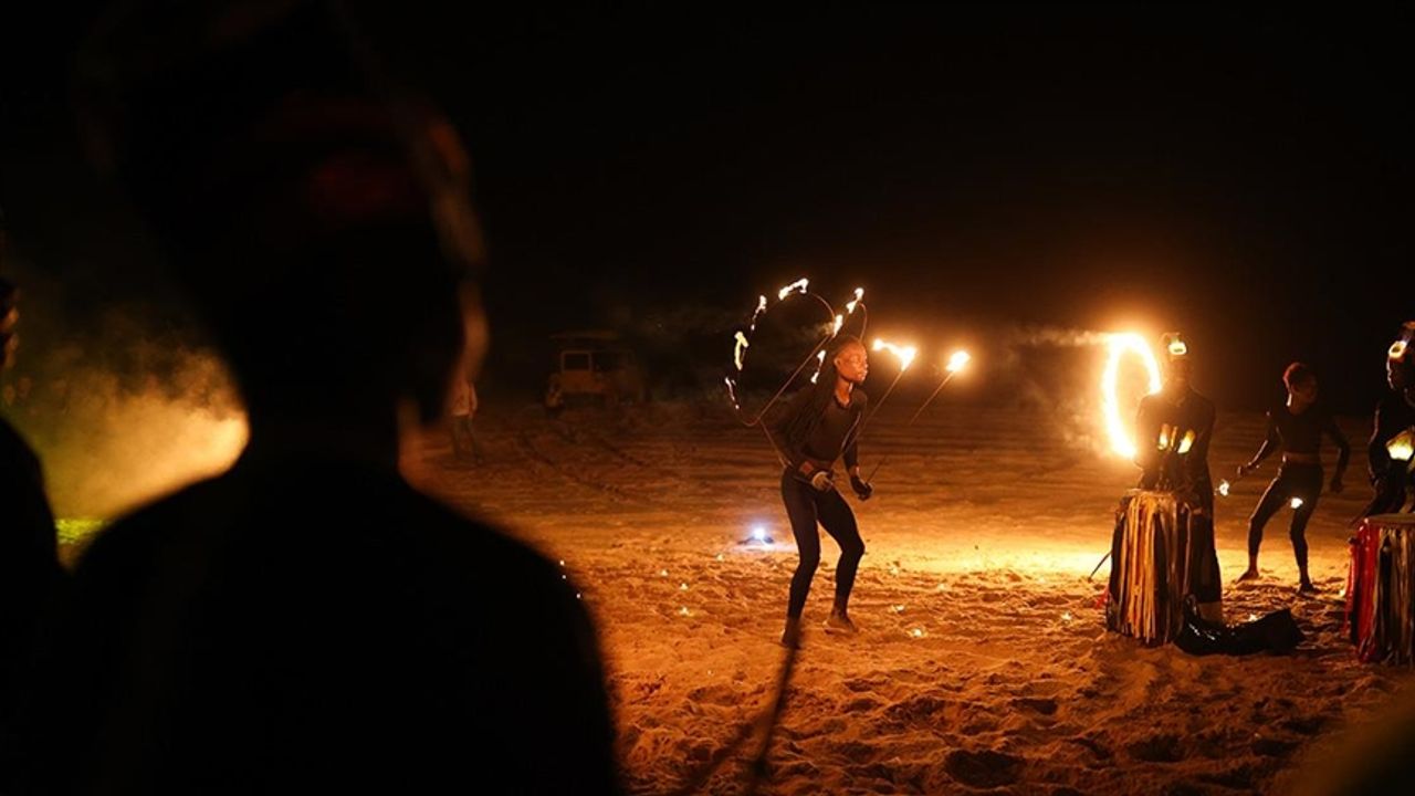 Dünya Haber - Dakar yakınlarında, Atlas Okyanusu kıyısında gece yarısı düzenlenen gösteride, geleneksel perküsyonlar çalan grup üyelerine ateş cambazları eşlik etti.