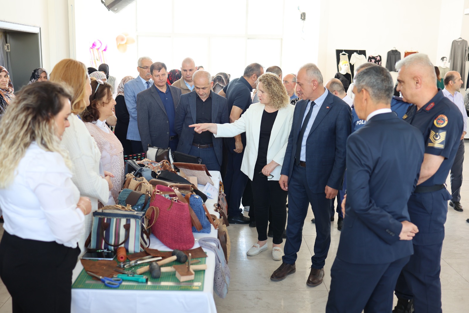 Sergide, Halk Eğitim Merkezi bünyesinde açılan 43 farklı kursa katılan toplam 775 kursiyerin yıl boyunca ürettiği çalışmalar ziyaretçilerin beğenisine sunuldu. Geleneksel el sanatlarından modern tasarımlara, hazır giyimden halı ve kilim dokumaya kadar pek çok alanda ürünlerin yer aldığı sergide, bu yıl ilk kez açılan deri tasarım kursunda üretilen çanta ve cüzdanlar da dikkat çekti.