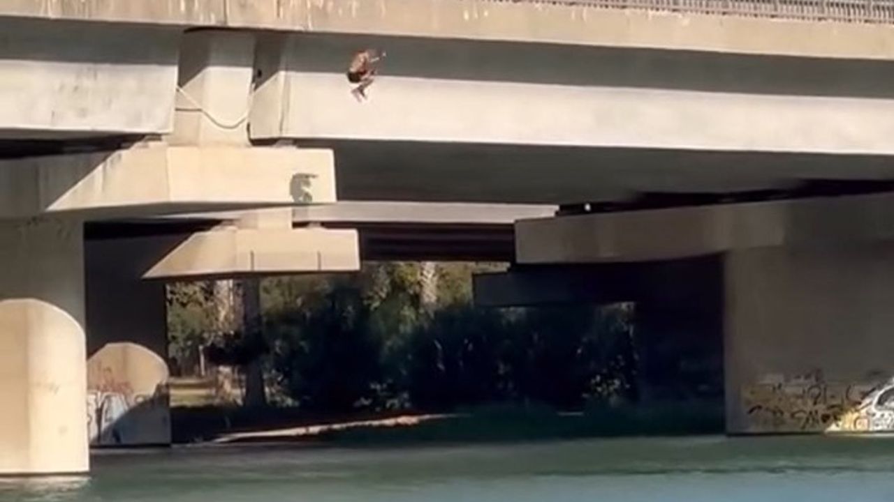 Gündem Haber - Sıcaklığın 30 derece seviyelerinde seyrettiği Adana'da bazı gençler serinlemek için Seyhan Nehri'ne girdi. Serinlemek isteyen gençler canlarını hiçe sayarak otoyol köprüsüne çıkıp metrelerce yükseklikten kendilerini Seyhan Nehri'ne bıraktı. Nehre düştükten sonra kıyıya çıkmak isteyen gençlerin zorlandığı görüldü. Gençlerin tehlikeye aldırış etmeden birkaç kez köprüden nehre atlaması tehlikeye davetiye çıkardı. Her yıl onlarca kişinin boğulduğu Adana'da gençler buna rağmen yüzmeye devam etti.