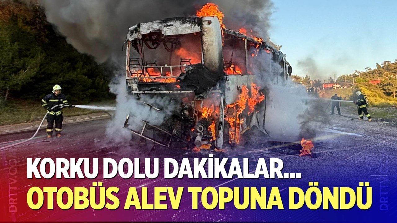 Gündem Haber - Olay, Muğla'nın Marmaris-Datça Karayolu Mezargediği mevkiinde saat 19.00 sıralarında meydana geldi. Edinilen bilgiye göre, seyir halindeki bir tur otobüsü, henüz bilinmeyen bir nedenle yanmaya başladı. Dumanları fark eden şoför aracı durdururken, yolcular ve sürücü hızla otobüsten indi. Kısa sürede alev topuna dönen otobüs çevrede kısa süreli paniğe neden oldu.
