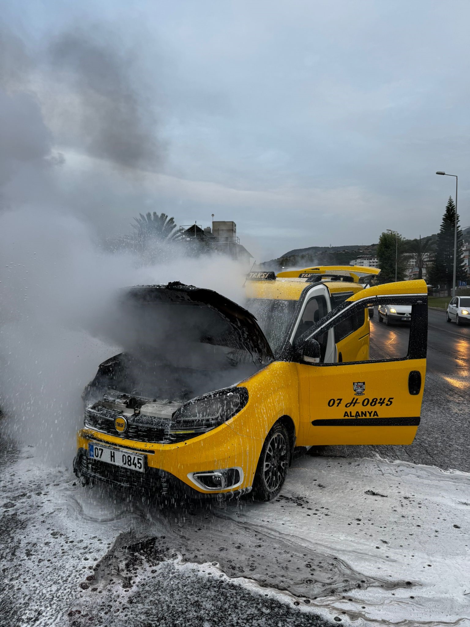 Gündem Haber - Yangın, Alanya'nın Dinek Mahallesi D-400 karayolunda meydana geldi. Edinilen bilgilere göre, ticari taksi D-400 karayolundan şehir merkezine gittiği sırada, otomobilin motor kısmından dumanlar yükseldi. Taksi sürücüsü aracını sağ çektikten sonra durumu 112 Acil Çağrı Merkezine bildirdi. Yangın büyümeden itfaiye ekipleri tarafından söndürülürken, otomobilin ön kısmında maddi hasar meydana geldi.
