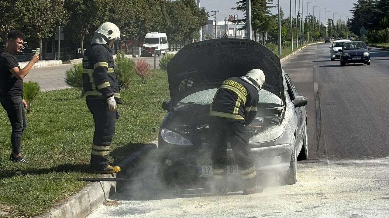 Gündem Haber - Yangın, Isparta-Eğirdir karayolunda meydana geldi. Edinilen bilgiye göre, Hasan Mert Paslı'nın kullandığı Peugeot marka otomobil, Isparta şehir merkezine seyir halindeyken motor kısmından alev aldı. Sürücü Paslı, aracını yolun sağ şeridine park ederek yardım istedi. İhbar üzerine olay yerine itfaiye ekipleri sevk edildi. Ekipler yangını kısa sürede kontrol altına alarak söndürdü. Bir süre soğutma çalışmaları devam ederken, otomobil çekici yardımıyla olay yerinden kaldırıldı.