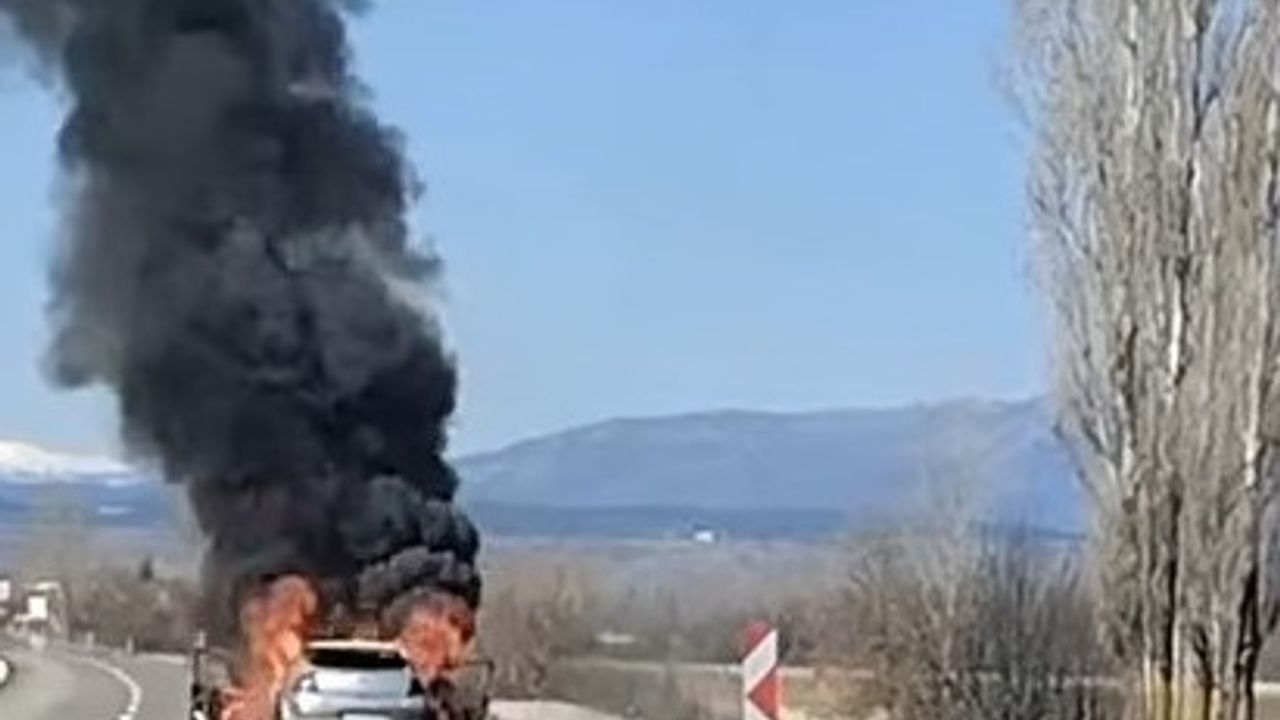 Henüz belirlenemeyen bir sebeple çıkan yangını fark eden sürücü, aracı yol kenarına çekerek son anda kendisini dışarı atmayı başardı. Araç alev alev yanarken, meydana gelen patlama korku dolu anların yaşanmasına sebep oldu.