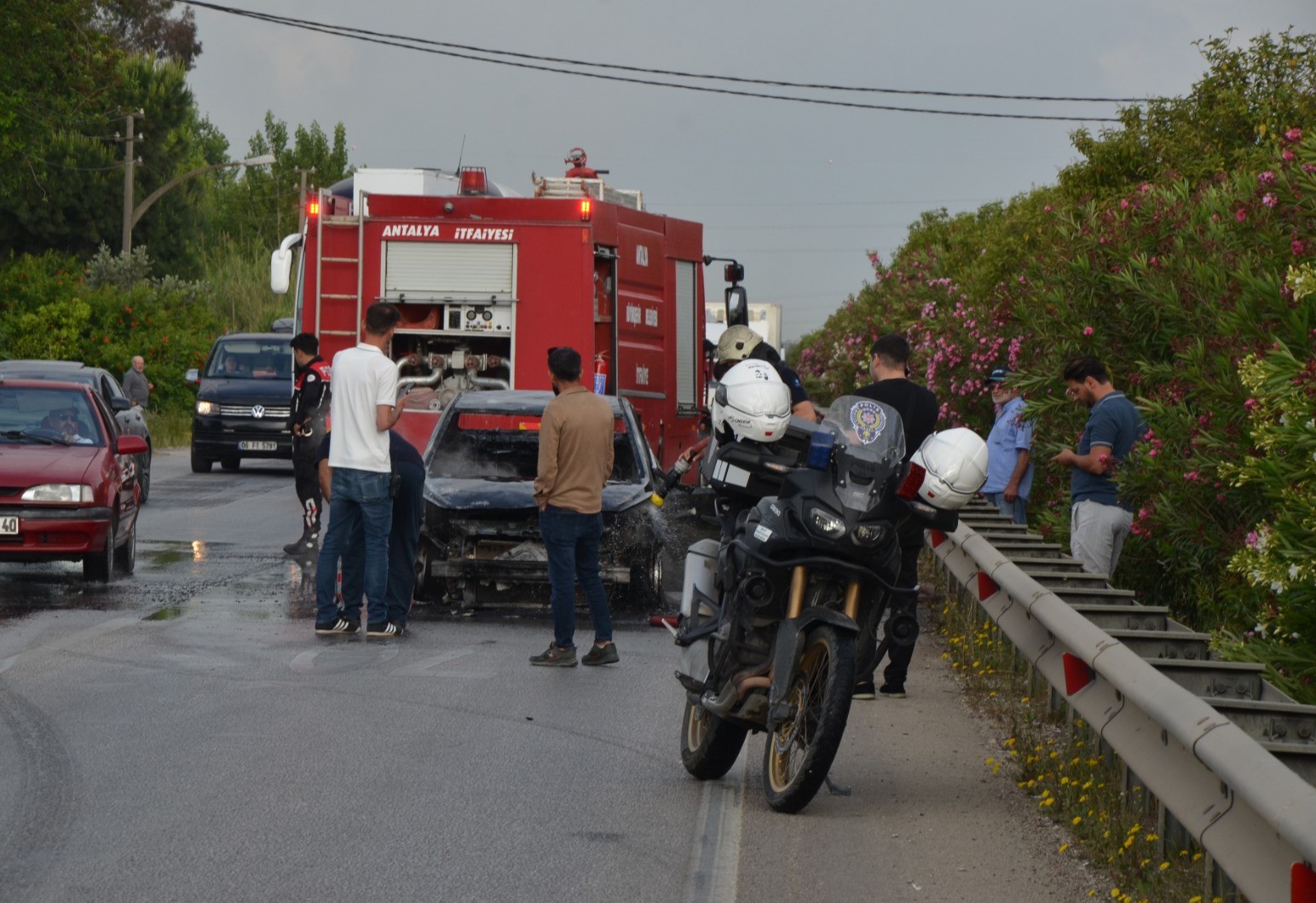 Gündem Haber - Olay, Serik'e bağlı Cumalı kavşağı yakınlarında meydana geldi. Edinilen bilgiye göre, Antalya'dan Serik yönüne doğru ilerleyen, Azerbaycan uyruklu Maksim A. 'nın kullandığı kiralama şirketine ait otomobil, henüz belirlenemeyen nedenden alev aldı. Aracın motor kısmından çıkan dumanları fark eden sürücü, aracı yol ortasında durdurup 112 Acil Çağrı Merkezi'nden yardım istedi. Olay yerine kısa sürede itfaiye ve polis ekipleri sevk edildi. İtfaiye ekiplerinin müdahalesiyle yangın kontrol altına alınarak söndürüldü. Tamamen yanan araç hurdaya döndü. Yangın nedeniyle tek şeritten sağlanan trafik yangının söndürülmesinin ardından tekrar normale döndü. Olayla ilgili inceleme başlatıldı.