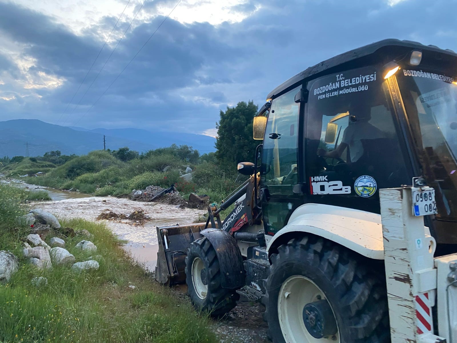 Bozdoğan Belediyesi, olumsuz hava şartlarına karşı ilçede her türlü tedbiri alarak, vatandaşların can ve mal güvenliğini sağlamak adına çalışmalarına aralıksız devam ediyor. Belediye ekipleri, yoğun yağış nedeniyle oluşabilecek tüm olumsuzluklara karşı teyakkuz halinde çalışmalarını sürdürüyor. Özellikle dere yataklarında biriken malzemelerin temizlenmesi ve suyun akışını engelleyen tıkanıklıkların giderilmesi için iş makineleriyle aralıksız müdahale ediliyor. Bozdoğan Belediye Başkanı Mustafa Galip Özel, "Vatandaşlarımızın güvenliği her şeyden önemli. Ekiplerimiz anında müdahalede bulundu, mahsur kalan hemşehrilerimiz sağ salim kurtarıldı. Haydere ve Dömen mahallelerimizde dere yataklarında temizlik ve açma çalışmaları devam ediyor. Tüm ekip arkadaşlarıma özverili çalışmaları için teşekkür ediyorum" dedi.