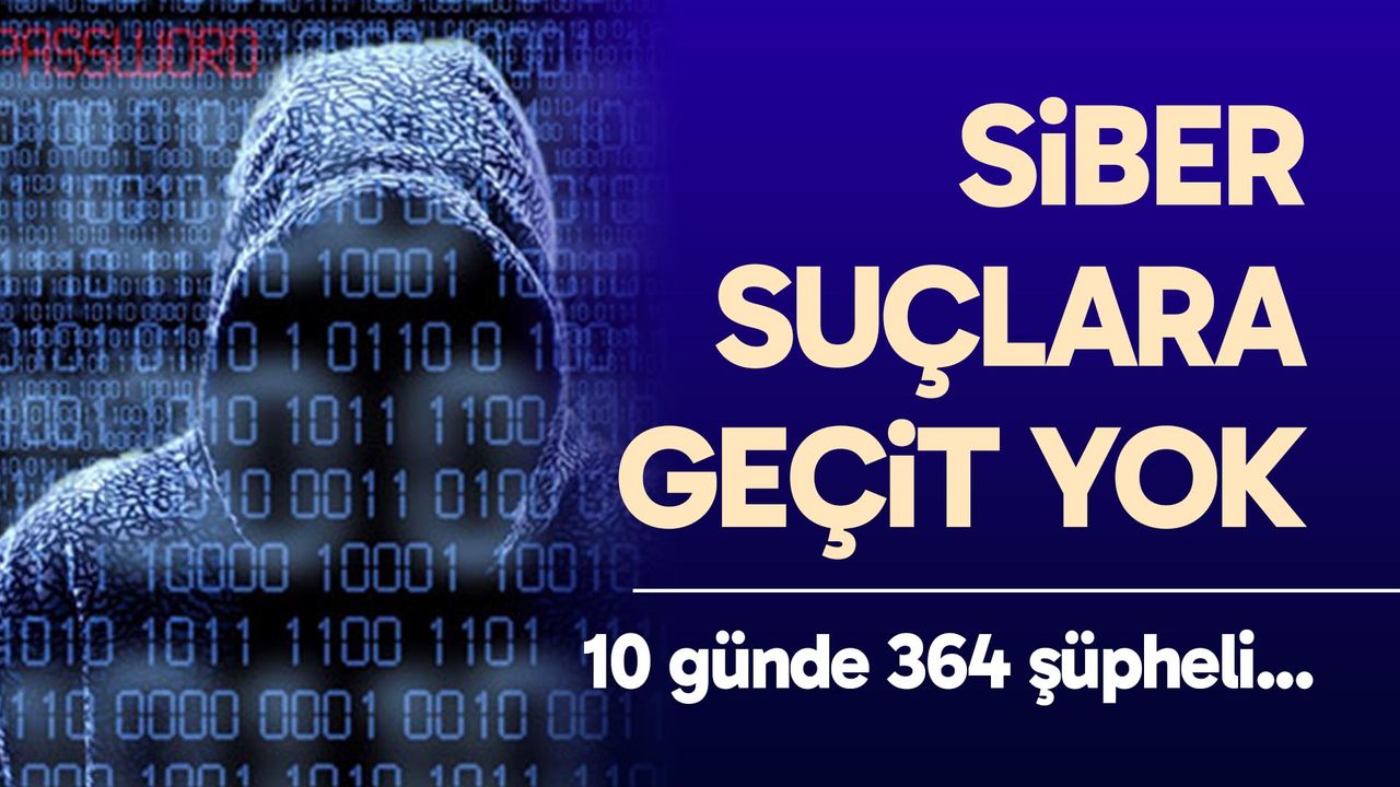 "Siber Suçlarla Mücadele kapsamında son 10 günde 364 şüpheliyi yakaladık. 23 il merkezli ‘Nitelikli Dolandırıcılık, Yasa Dışı Bahis, Çevrim İçi Çocuk Müstehcenliği ve Tacizi’ suçlarına yönelik düzenlenen operasyonlarımızda; 125 şüpheli şahıs tutuklandı. 94’ü hakkında adli kontrol hükümleri uygulandı. Diğerlerinin işlemleri devam ediyor. Şüphelilerin; ‘Sigorta hizmeti, kiralık bungalov, hediye çeki ve yatırım danışmanlığı’ temalarını kullanarak vatandaşlarımızı dolandırdıkları, Yasa dışı bahis ve kumar sitelerinin reklamını yaptıkları, Yasa dışı bahis ve kumar oynattıkları, yasa dışı para nakline aracılık ettikleri, Müstehcen çocuk görüntüsü barındırdıkları, vatandaşlarımızın mobil bankacılık hesaplarına erişim sağlayarak, haksız kazanç elde ettikleri tespit edildi. Ankara, Antalya, Ardahan, Balıkesir, Çanakkale, Çorum, Diyarbakır, Gaziantep, Gümüşhane, Hatay, İstanbul, Karabük, Kayseri, Kırıkkale, Kırşehir, Kocaeli, Mersin, Niğde, Ordu, Osmaniye, Sakarya, Sivas ve Van merkezli gerçekleştirilen operasyonlarda yakalanan şüphelilerin Savcılıklarımızca haklarında soruşturma başlatıldı."