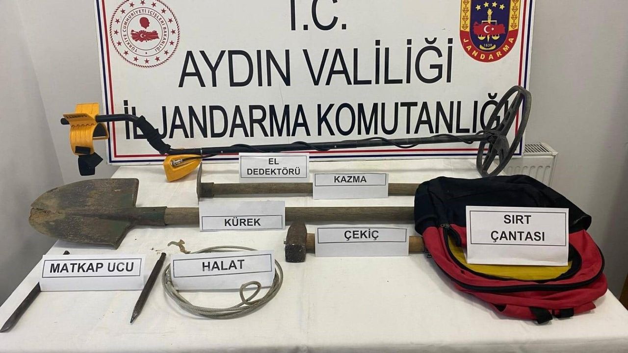 Gündem Haber - Aydın'da jandarma ekipleri tarihi ve kültürel mirasın korunması için denetimlerini aralıksız sürdürüyor. Edinilen bilgiye göre, Aydın İl Jandarma Komutanlığı’na bağlı İncirliova İlçe Jandarma Komutanlığı ekipleri Dereağzı Mahallesi’nde gerçekleştirdikleri devriye faaliyeti sırasında, K.B. (27), T.B. (32) ve S.Ö. (59) isimli 3 şüpheli şahsı birinci derece sit alanında izinsiz kazı yaparken suçüstü yakaladı. Şüphelilerle birlikte; 1 adet dedektör, 1 adet kazma, 1 adet kürek, 1 adet çekiç, 1 adet sırt çantası, 1 adet matkap ucu, 1 adet halat ele geçirilerek muhafaza altına alındı.