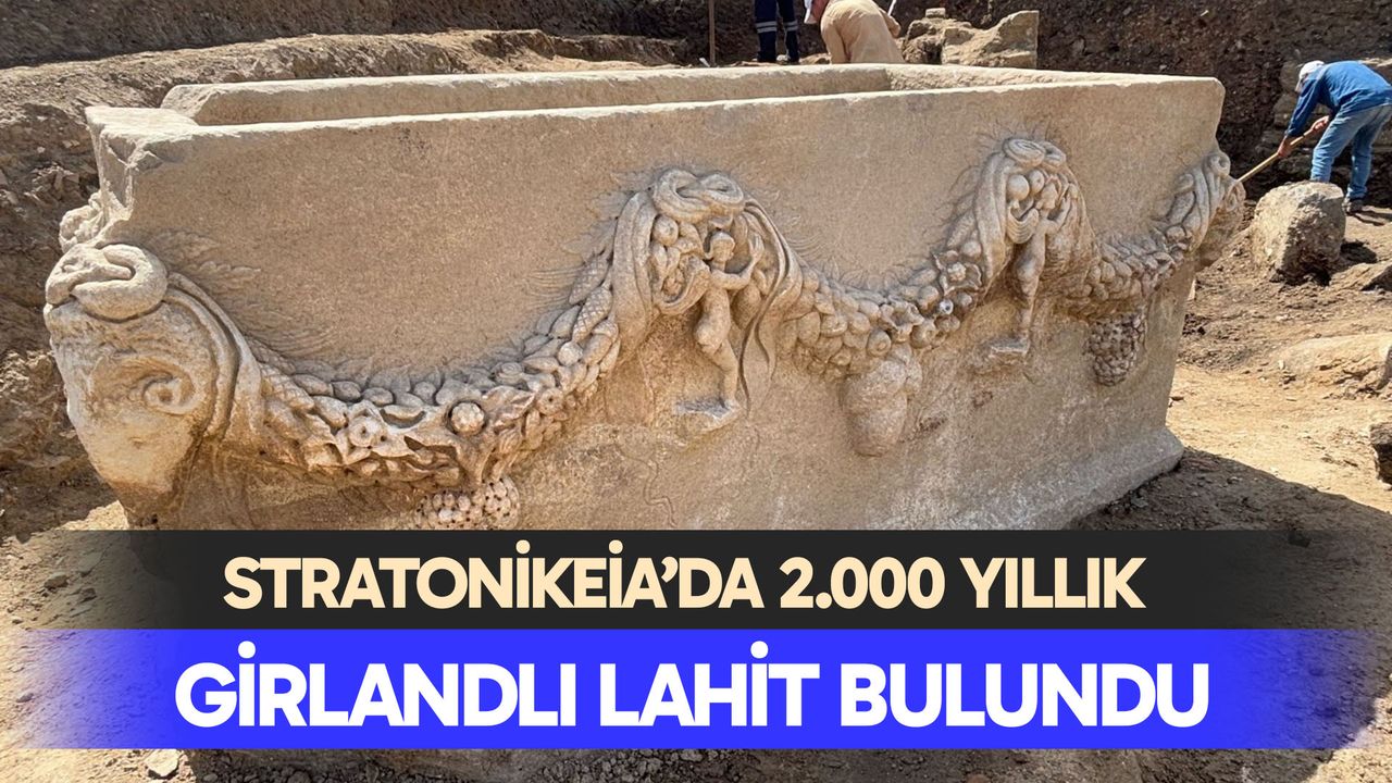 Girland betimlemeleri çam kozalağı, haşhaş, nar ve üzüm gibi meyveler ile yaprak ve çiçeklerden oluşmakta dönemin özelliği olarak olabildiğince gösterişli işlenmiş bir çelenkten oluşmaktadır. Üzerindeki mimari süslemelerine göre tarihi daha net olarak belirlenebilmektedir. Stratonikeia antik kentinde daha önce de lahit ve lahit parçaları bulunmuştu. Bu kentte bilinen örnekler içerisinde en erken ve en güzel betimlenen örnek durumundadır. Antik dönemde Stratonikeia’nın bir lahit üretim merkezi olduğu düşünmekteydi. Yeni çalışmalarda bulunan eserler bu düşünceyi desteklemektedir. Bu lahit alandaki çalışmaları tamamlandıktan sonra antik kent içinde uygun bir alanda sergilenmeye devam edecektir.”