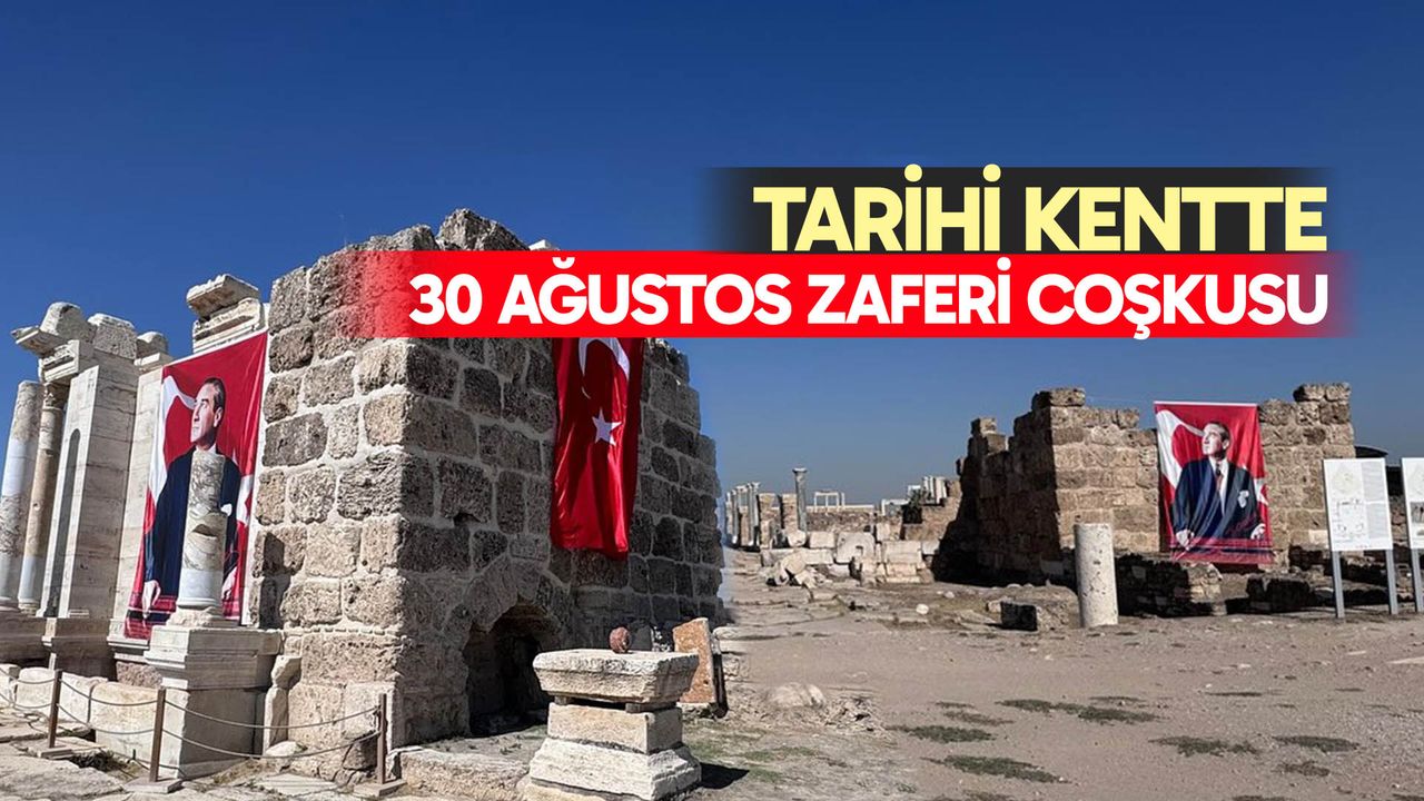 Denizli Haber - 30 Ağustos Zafer Bayramı tüm yurtta olduğu gibi Denizli’de de düzenlenen törenler ile kutlandı. Tarihi zaferin 103 yıl dönümü nedeniyle Denizli’nin en önemli antik kentlerinden biri olan Laodikya Antik Kenti Türk Bayrakları ve Ulu Önder Mustafa Kemal Atatürk’ün portreleri ile donatıldı. Tarihi antik kenttin Türk Bayrakları ve Ulu Önder Mustafa Kemal Atatürk’ün portreleri donatılması ise bölgeye gelenlerin ziyaretçilerin dikkatini çekti.
