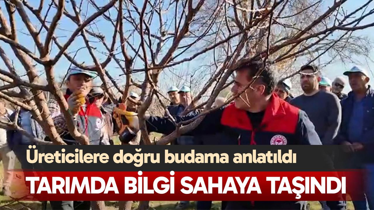 Eğitimde, DERİM Projesi kapsamında yer alan örnek meyve üreticisi Mustafa Demiralan, sahip olduğu bilgi ve tecrübeleri üreticilerle paylaşarak meyve ağaçlarında budamanın püf noktalarını sahada uygulamalı olarak anlattı. Üreticiler, doğru budama teknikleri sayesinde verim ve kalite artışı sağlamanın yolları hakkında bilgi edindi.