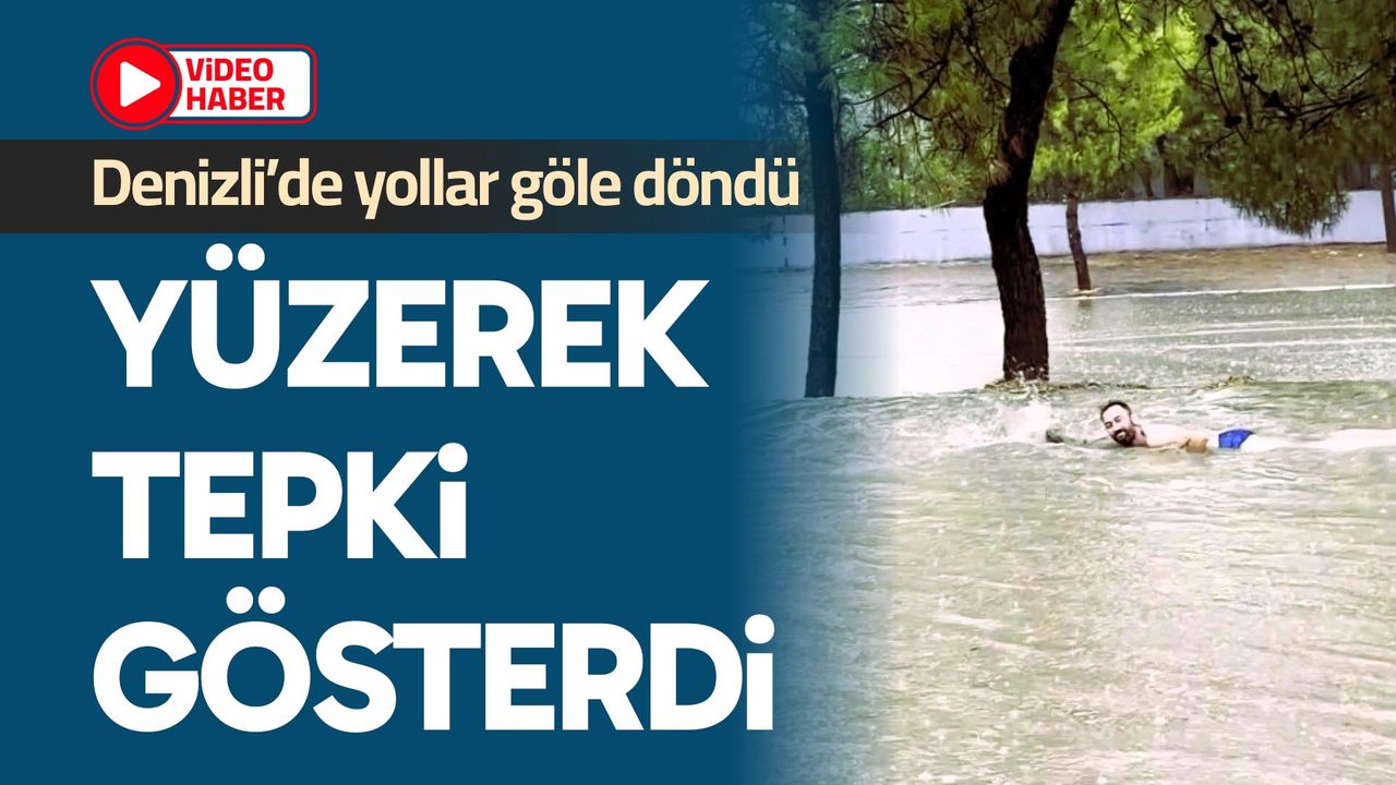 Alt yapıdaki yetersizlik nedeniyle her yağışta aynı manzarayla karşılaşan yüzme antrenörü Tahsin Okutucu, Merkezefendi ilçesine bağlı Şemikler Mahallesi Cinkaya Bulvarında sıra dışı bir tepkiye imza attı. Soyunarak göle dönen bulvarda kulaç atmaya başlayan Okutucu, yıllardır çözülemeyen soruna dikkat çekti. Bir ara sırt üstü yüzen Okutucu'nun gülümsetirken düşündüren tepkisini arkadaşı Sercan Meral cep telefonuyla görüntüledi. Su baskınlarına neden olan kısa süreli yağışın ardından, yeniden günlük güneşlik bir hava hekim oldu.