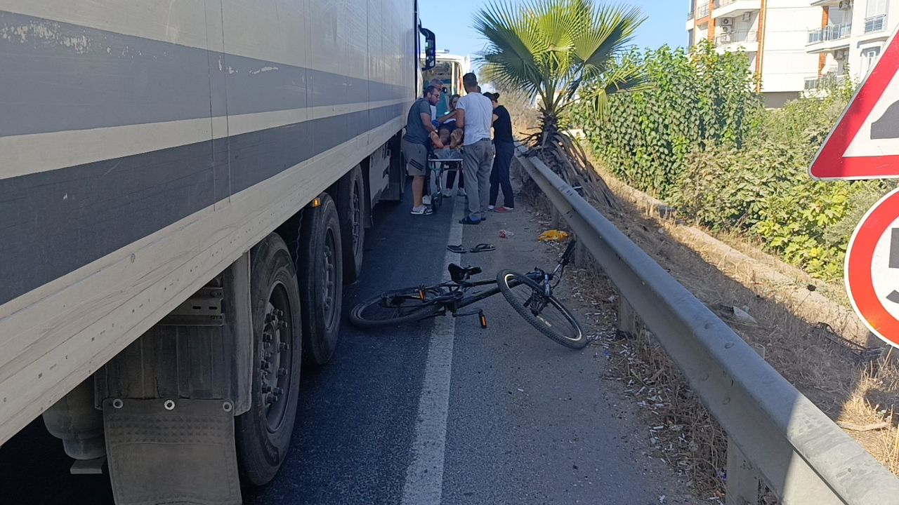 Gündem Haber-Kaza, dün Alanya-Antalya D-400 Karayolu Manavgat Çevreyolu üzerinde meydana geldi. Alanya istikametinden Antalya istikametine seyir halindeki Tufan Kandaş’ın kullandığı 07 CBA 679 plakalı, 07 BVB 230 dorse plakalı tır, Manavgat Çevreyolu Köprüsüne yaklaşık 100 metre mesafede emniyet şeridinde ilerleyen Emin Karabacak’ın kullandığı bisiklete çarptı.