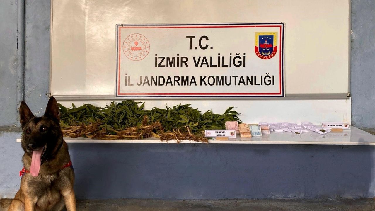 Ödemiş İlçe Jandarma Komutanlığına bağlı Narkotik ve İstihbarat Şube Müdürlüğü ekipleri, ilçede E.U. ve M.U. adlı şahısların uyuşturucu ticareti yaptığını belirledi. Şüphelilerin adresine narkotik köpeği 'Atik' ile arama yapıldı. Köpeğin tepki verdiği yerlerde ise satışa hazırlanmış halde 405 gram kubar esrar ve 68 kök kenevir bitkisi ele geçirildi. Öte yandan ekipler tarafından da uyuşturucu ticaretinden elde edildiği belirlenen 39 bin 380 lira para ele geçirildi. Operasyon kapsamında E.U. ve M.U., gözaltına alındı.